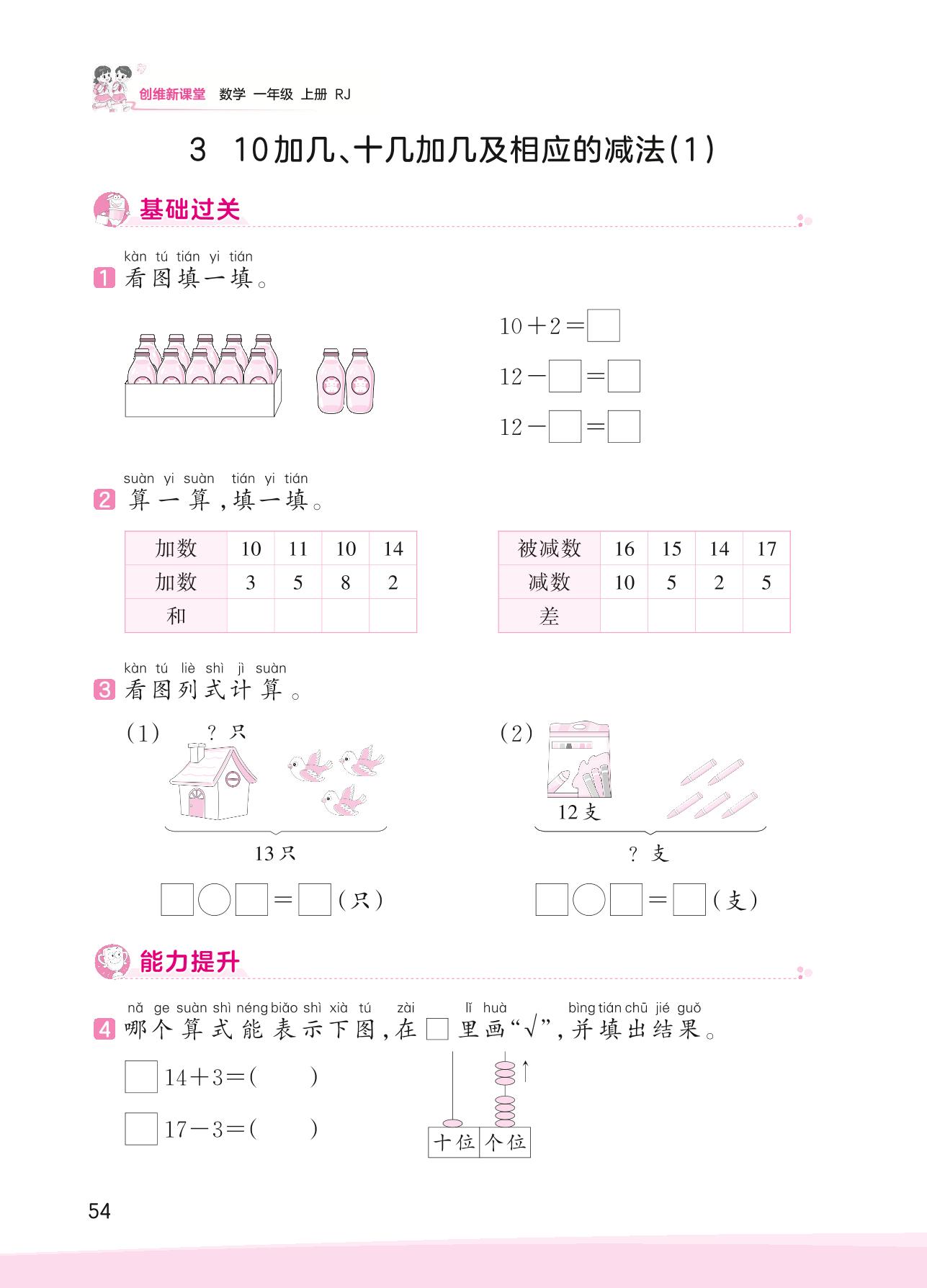 2023上册一年级数学人教版 六 11~20各数的认识——3 10加几、十几加几及相应的减法(1)