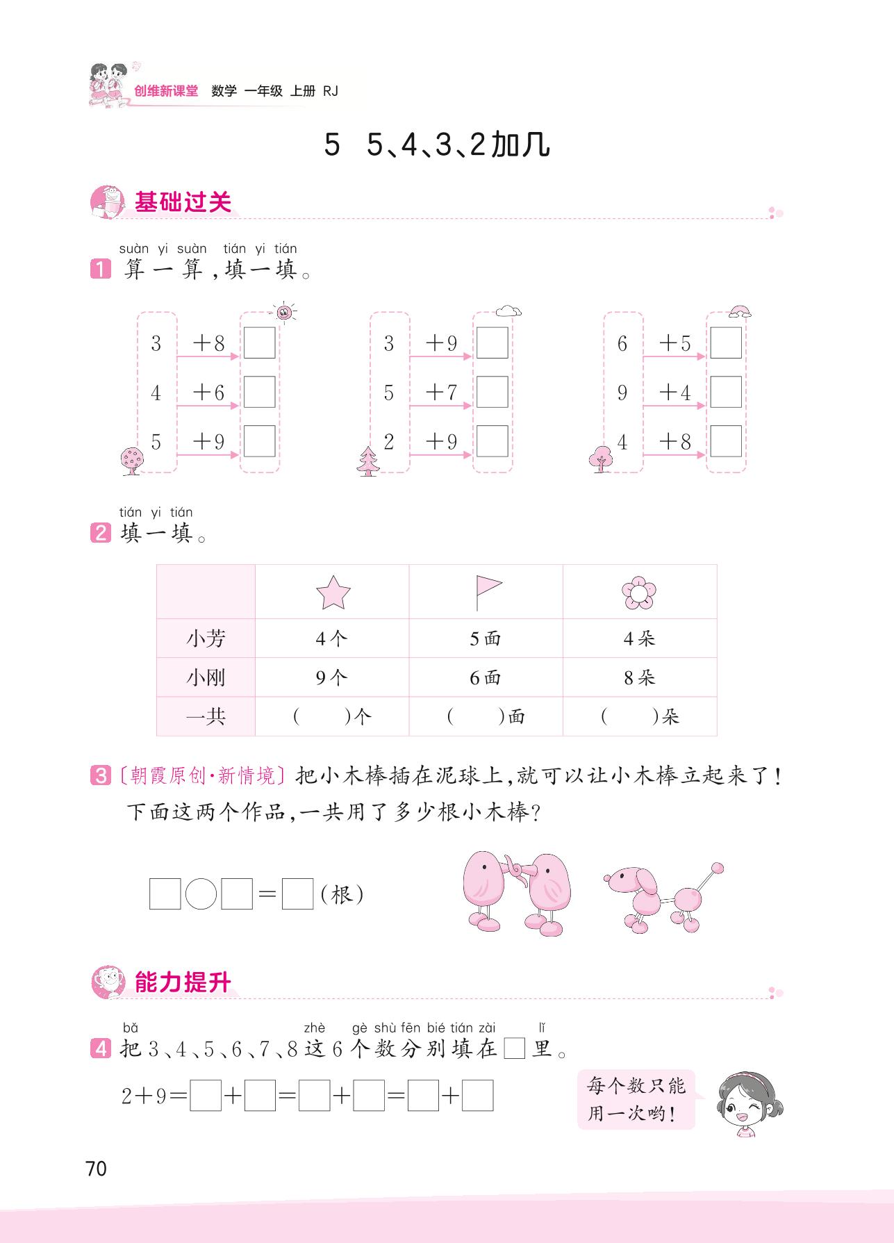 2023上册一年级数学人教版 八 20以内的进位加法——5 5、4、3、2加几