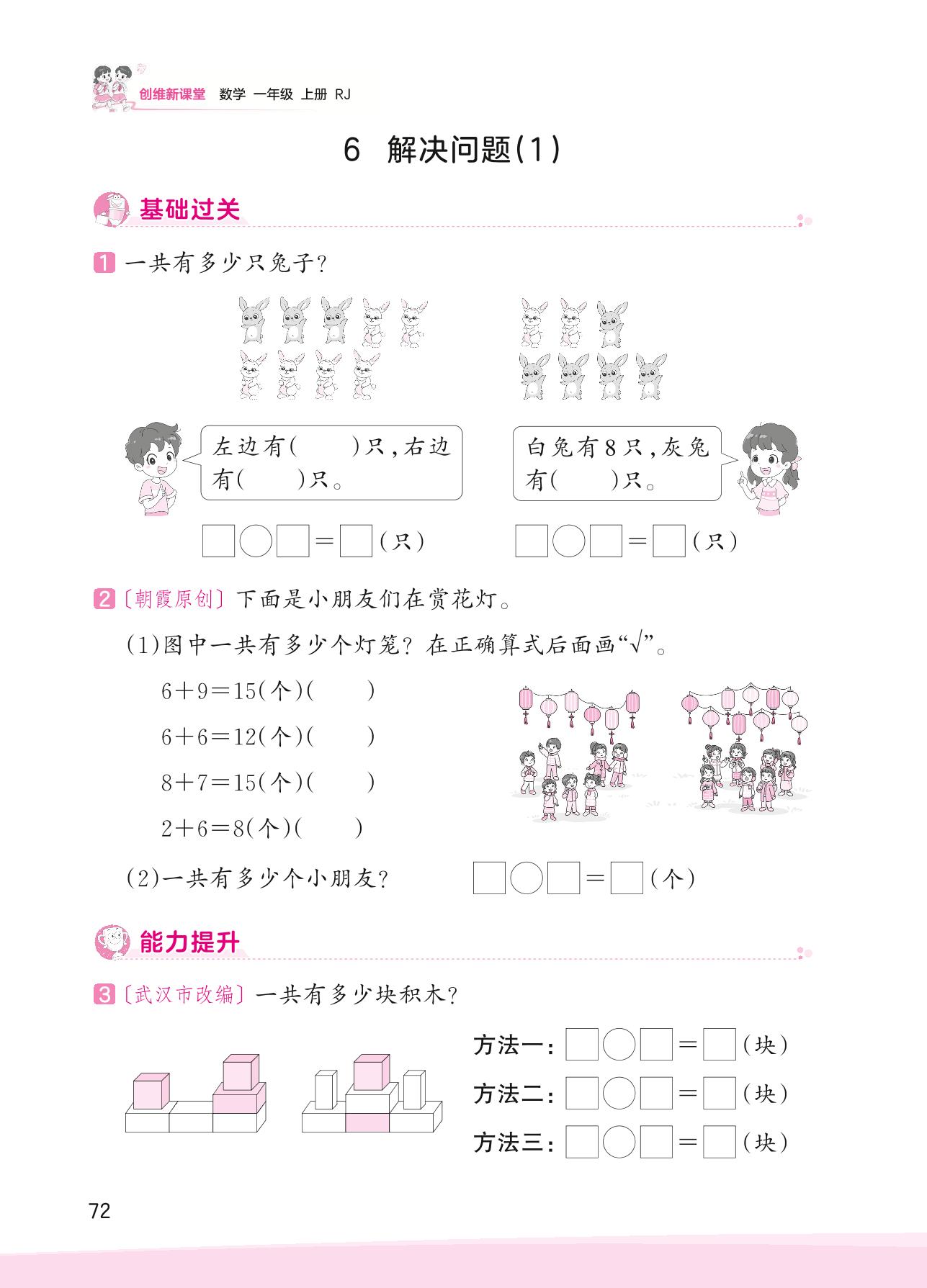 2023上册一年级数学人教版 八 20以内的进位加法——6 解决问题(1)