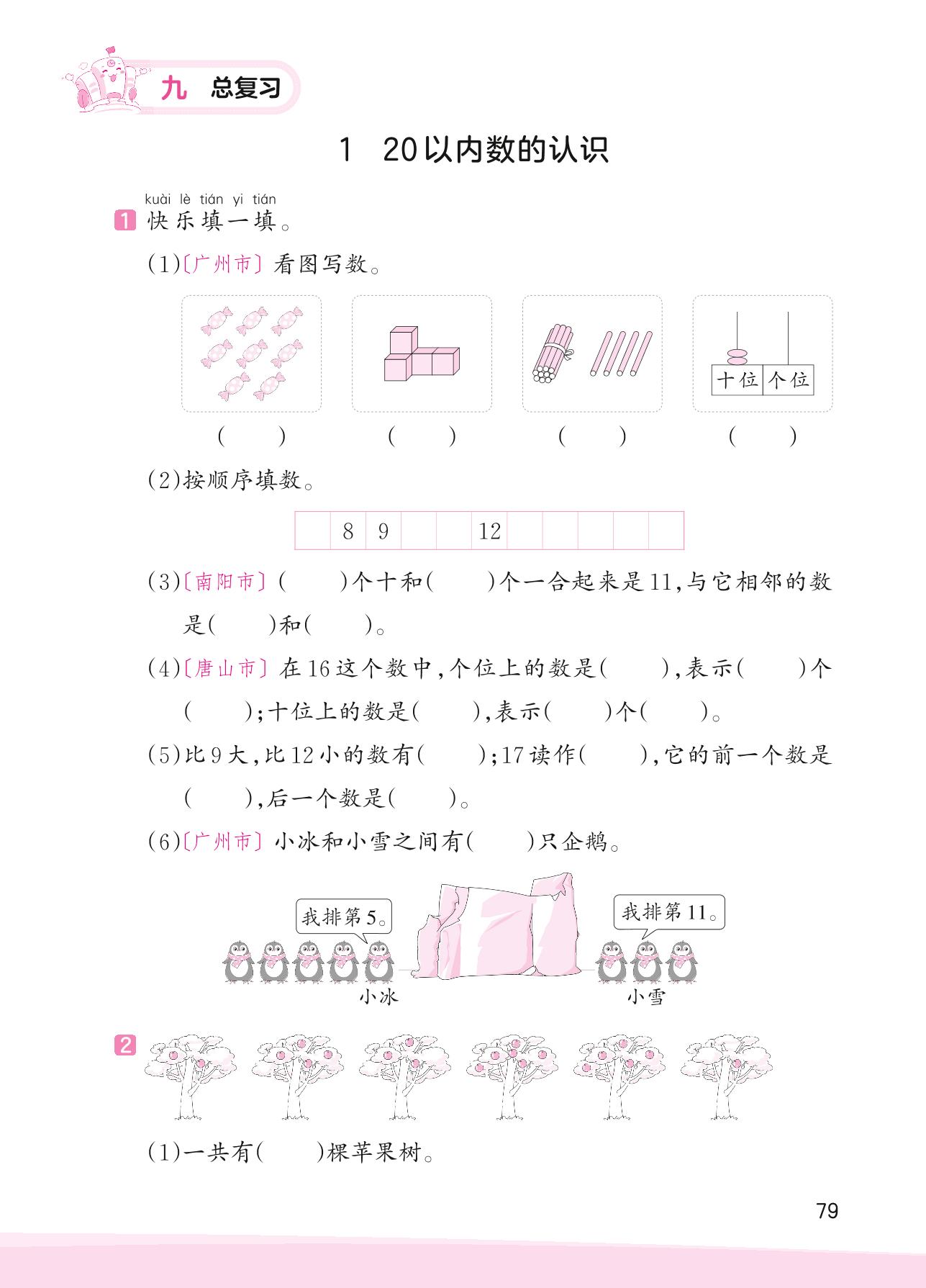 2023上册一年级数学人教版 九 总复习——1 20以内数的认识