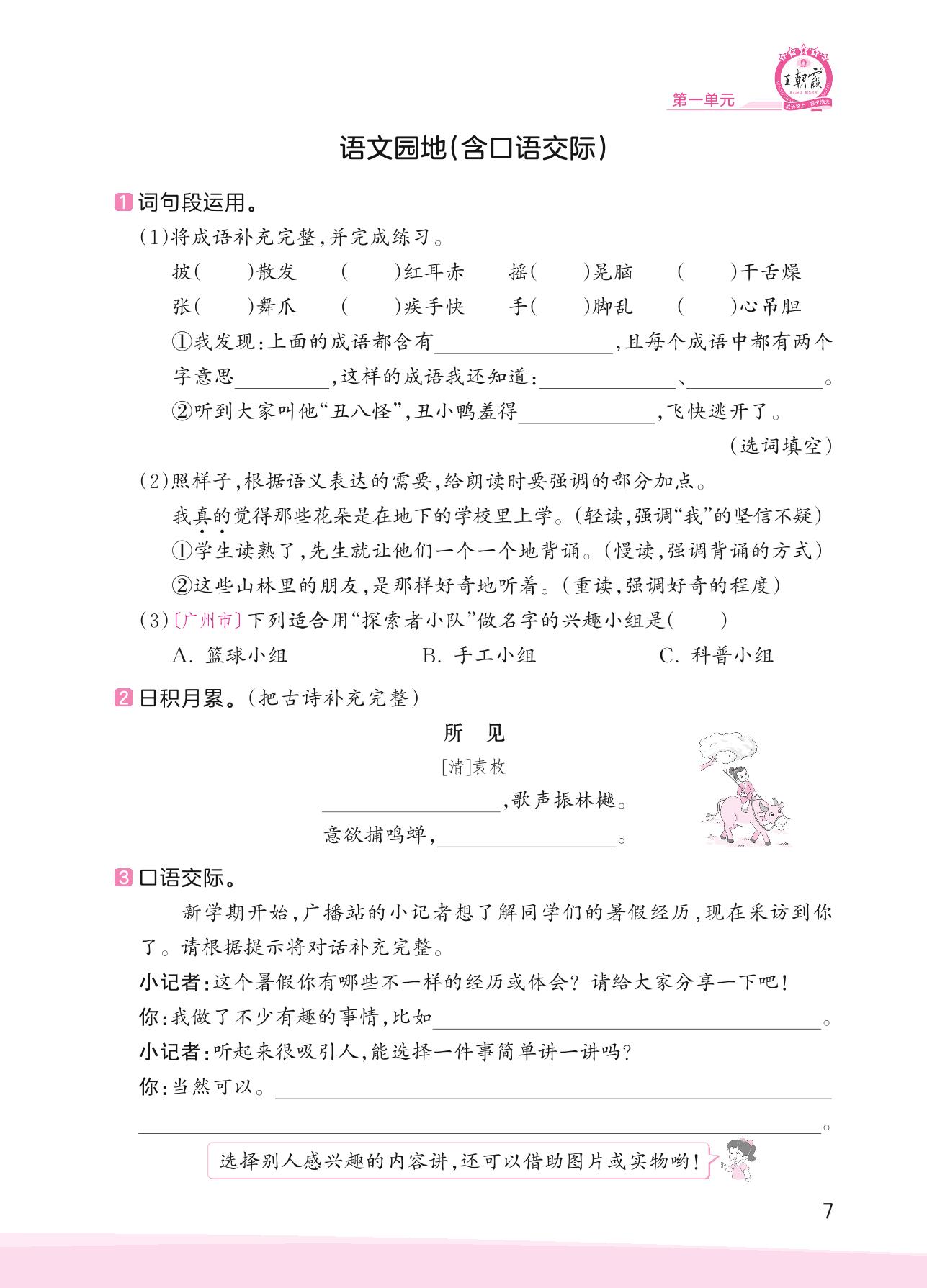 2023上册三年级语文人教版 第一单元 学校生活——语文园地[含口语交际]