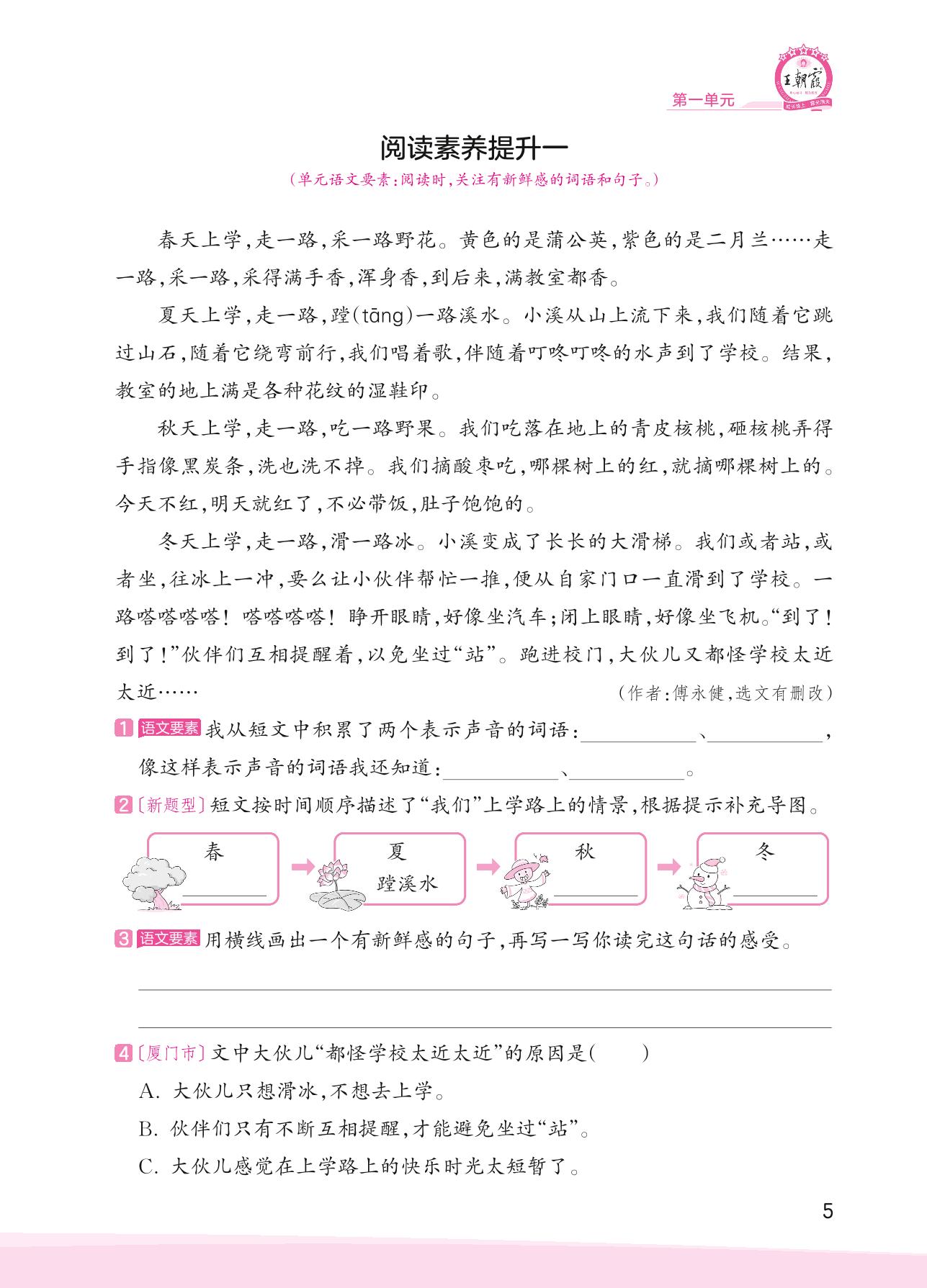 2023上册三年级语文人教版 第一单元 学校生活——阅读素养提升一