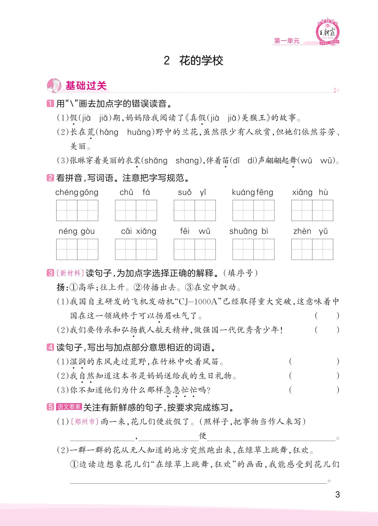 2023上册三年级语文人教版 第一单元 学校生活——2 花的学校