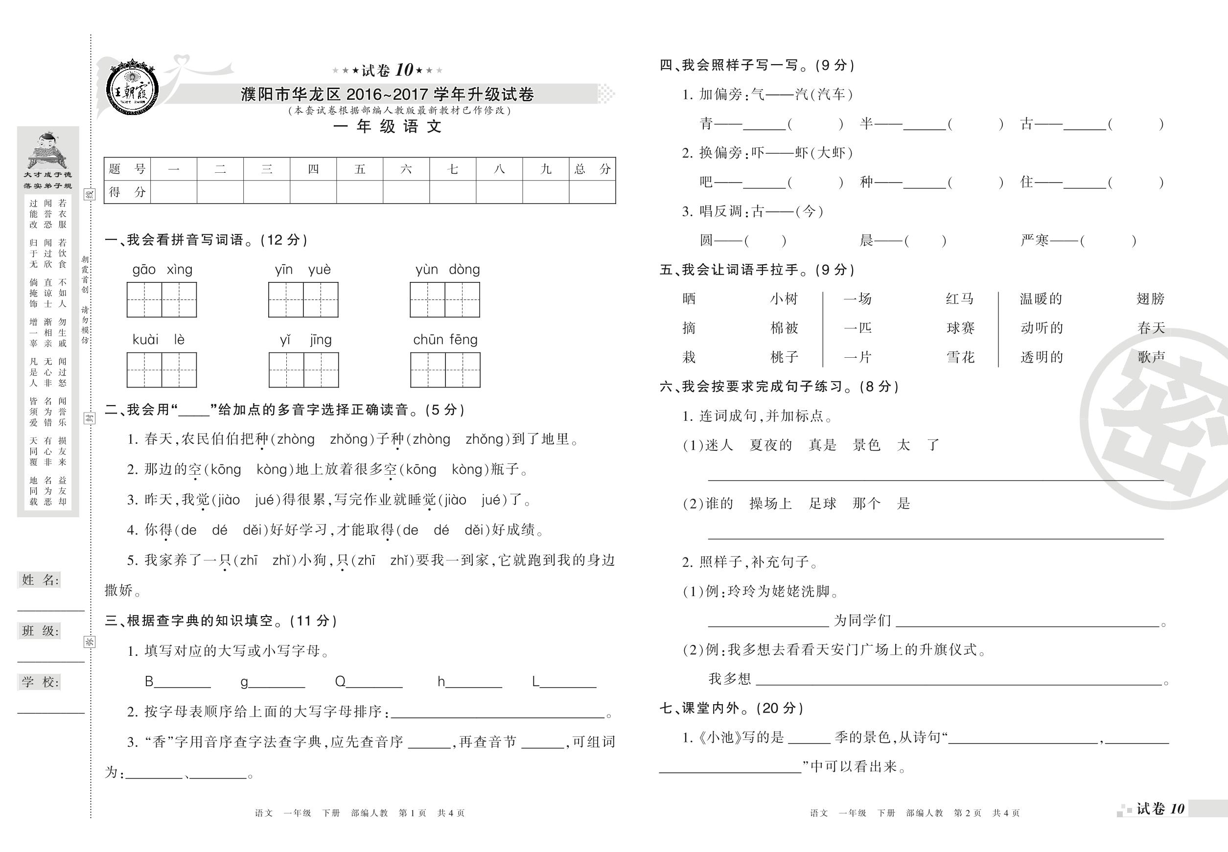 2016-2017学年第二学期濮阳市华龙区一年级语文试卷(人教版)_R210731191139【10】