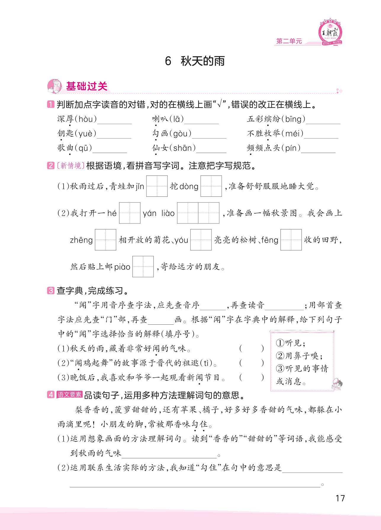 2023上册三年级语文人教版 第二单元 金秋时节——6 秋天的雨