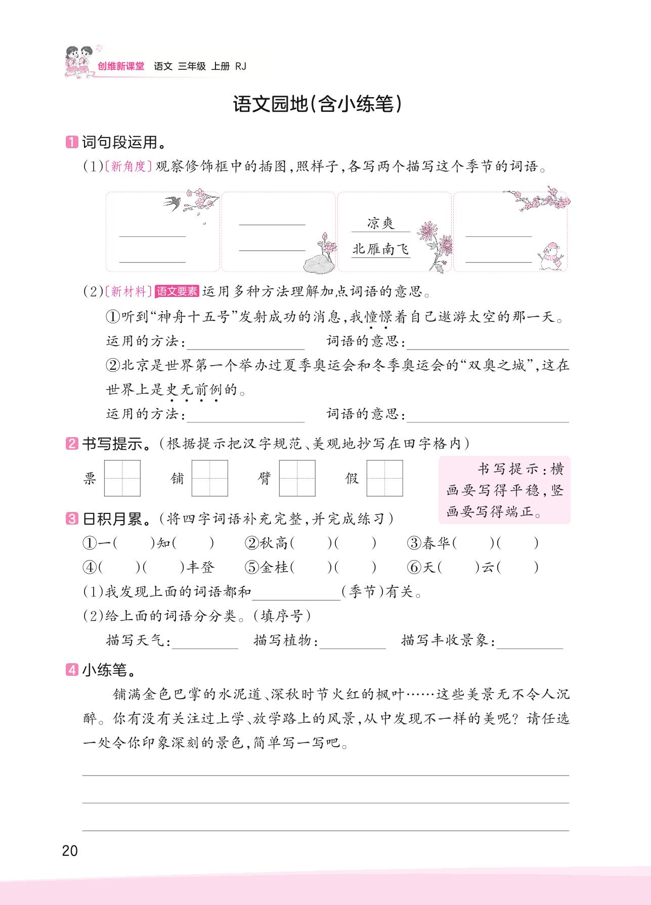 2023上册三年级语文人教版 第二单元 金秋时节——语文园地[含小练笔]
