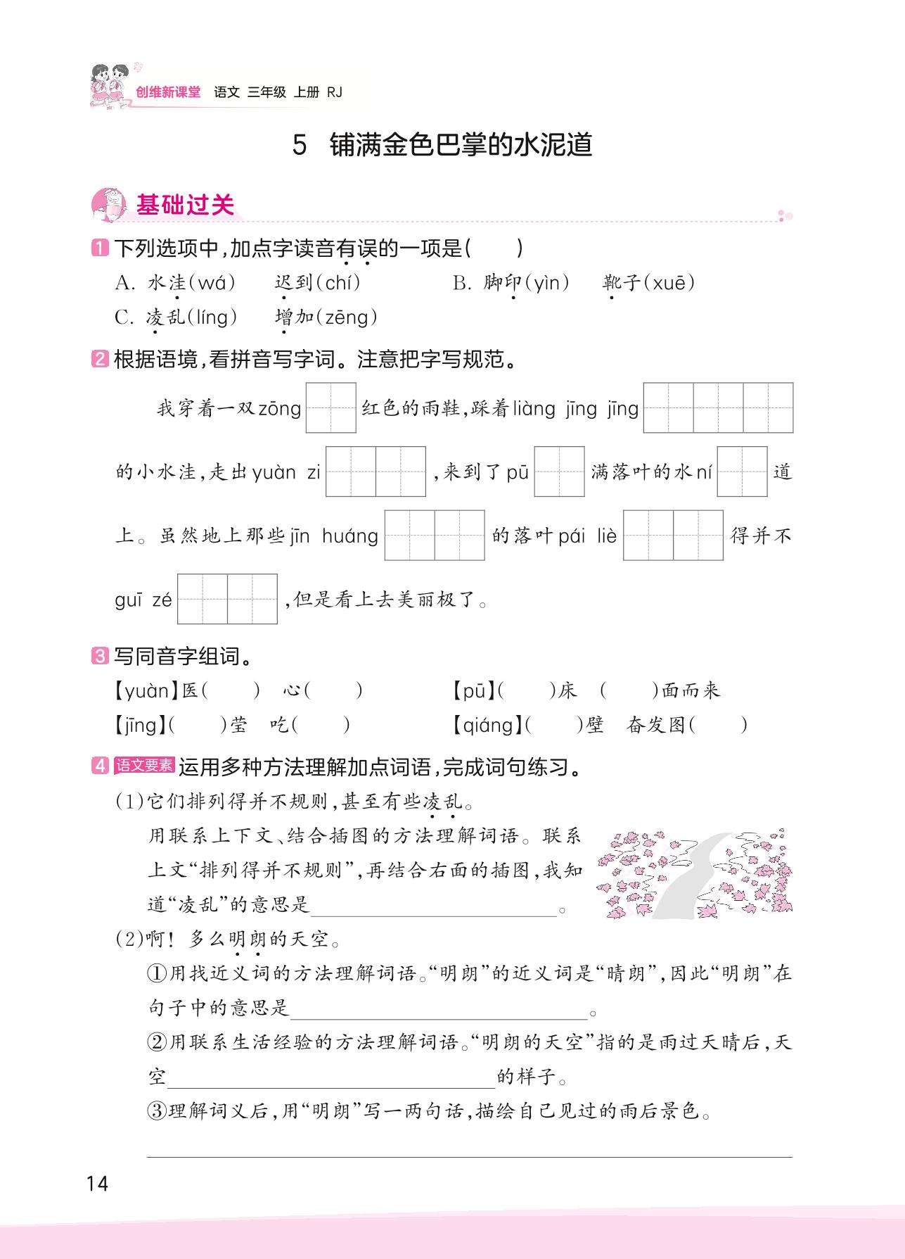 2023上册三年级语文人教版 第二单元 金秋时节——5 铺满金色巴掌的水泥道