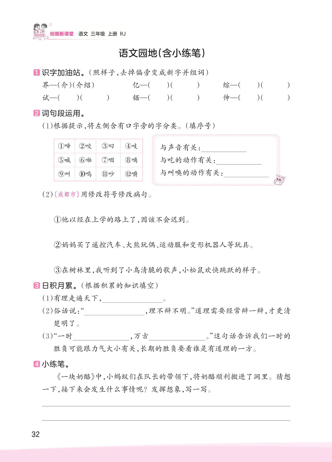 2023上册三年级语文人教版 第三单元 童话世界——语文园地[含小练笔]