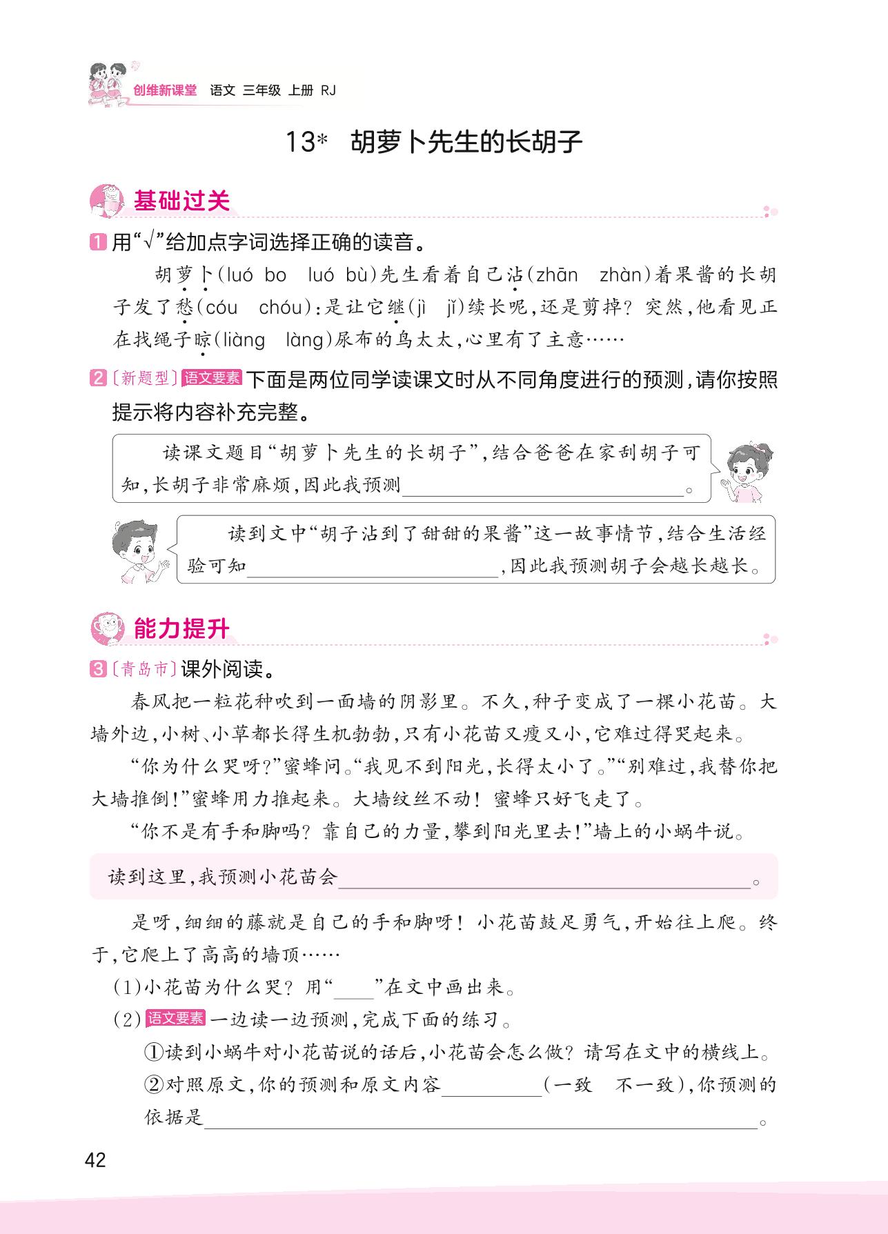 2023上册三年级语文人教版 第四单元 预测——13 胡萝卜先生的长胡子