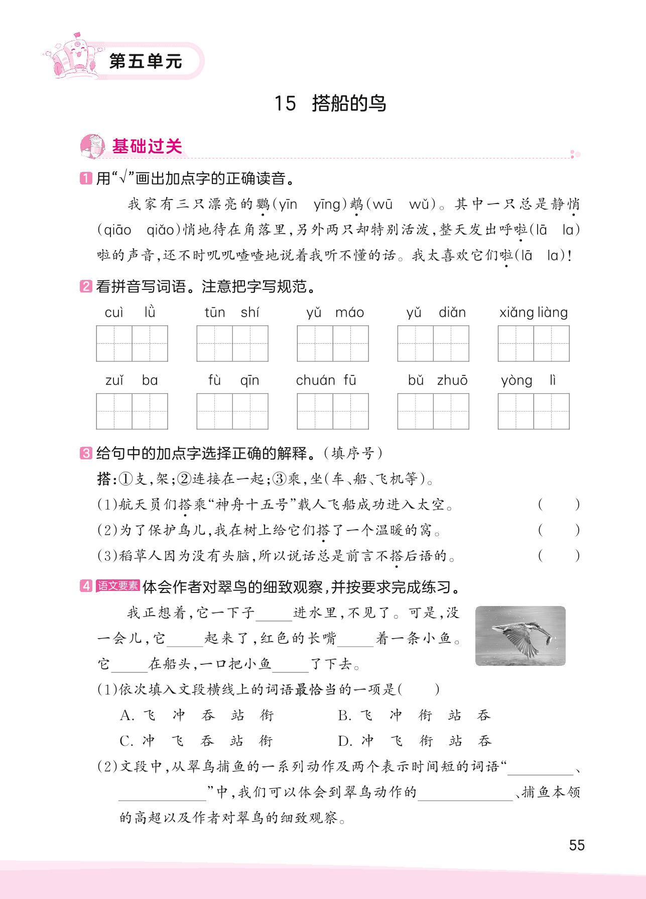2023上册三年级语文人教版 第五单元 留心观察——15 搭船的鸟