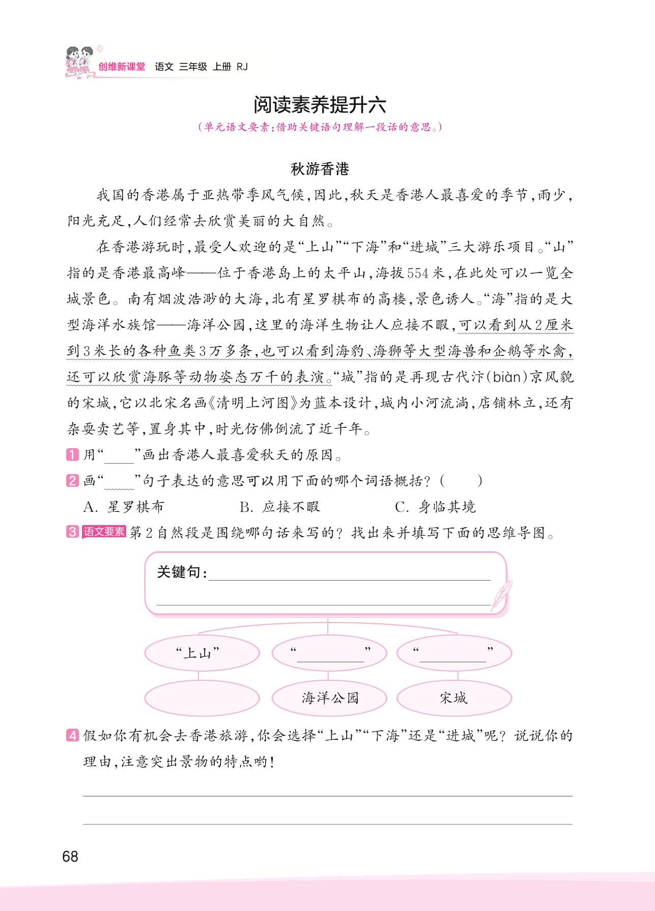 2023上册三年级语文人教版 第六单元 祖国河山——阅读素养提升六