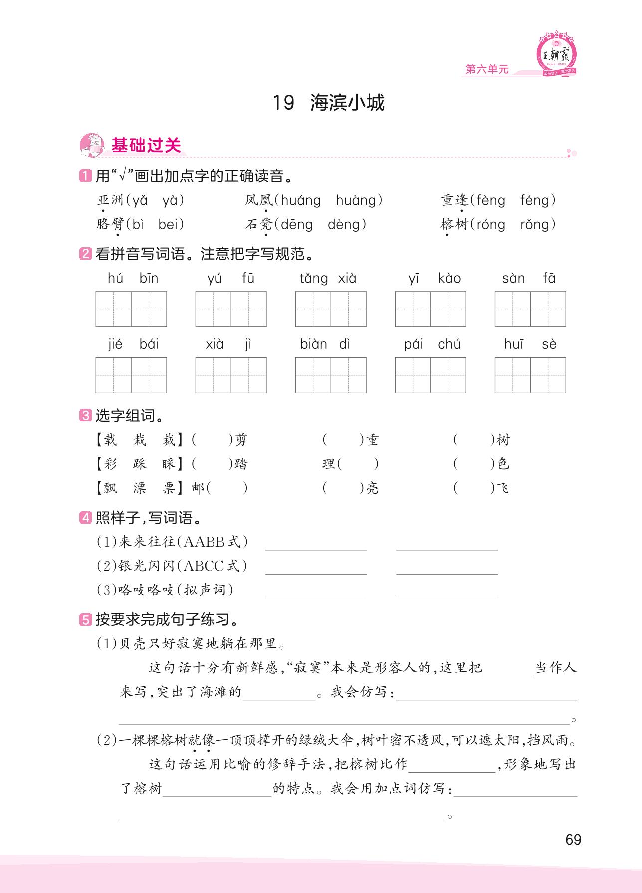 2023上册三年级语文人教版 第六单元 祖国河山——19 海滨小城