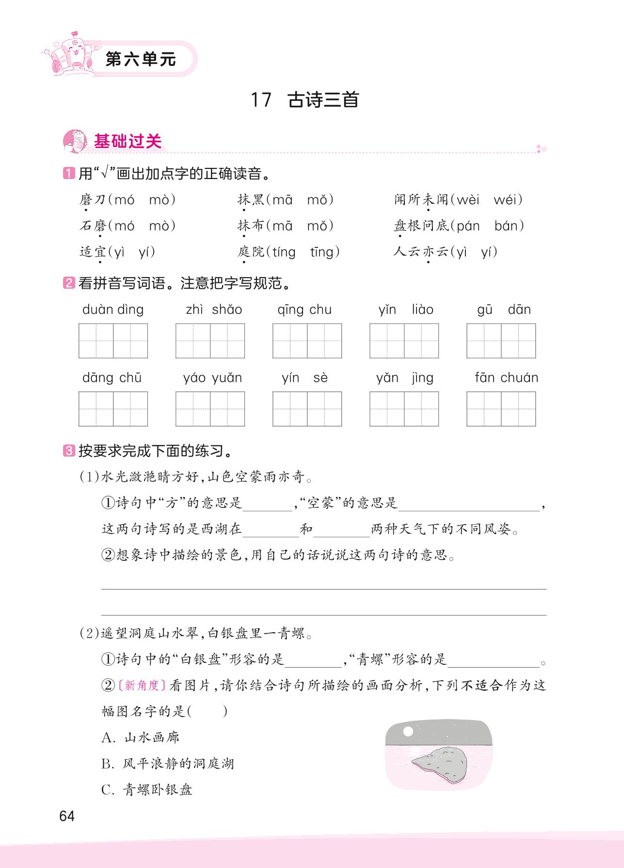 2023上册三年级语文人教版 第六单元 祖国河山——17 古诗三首