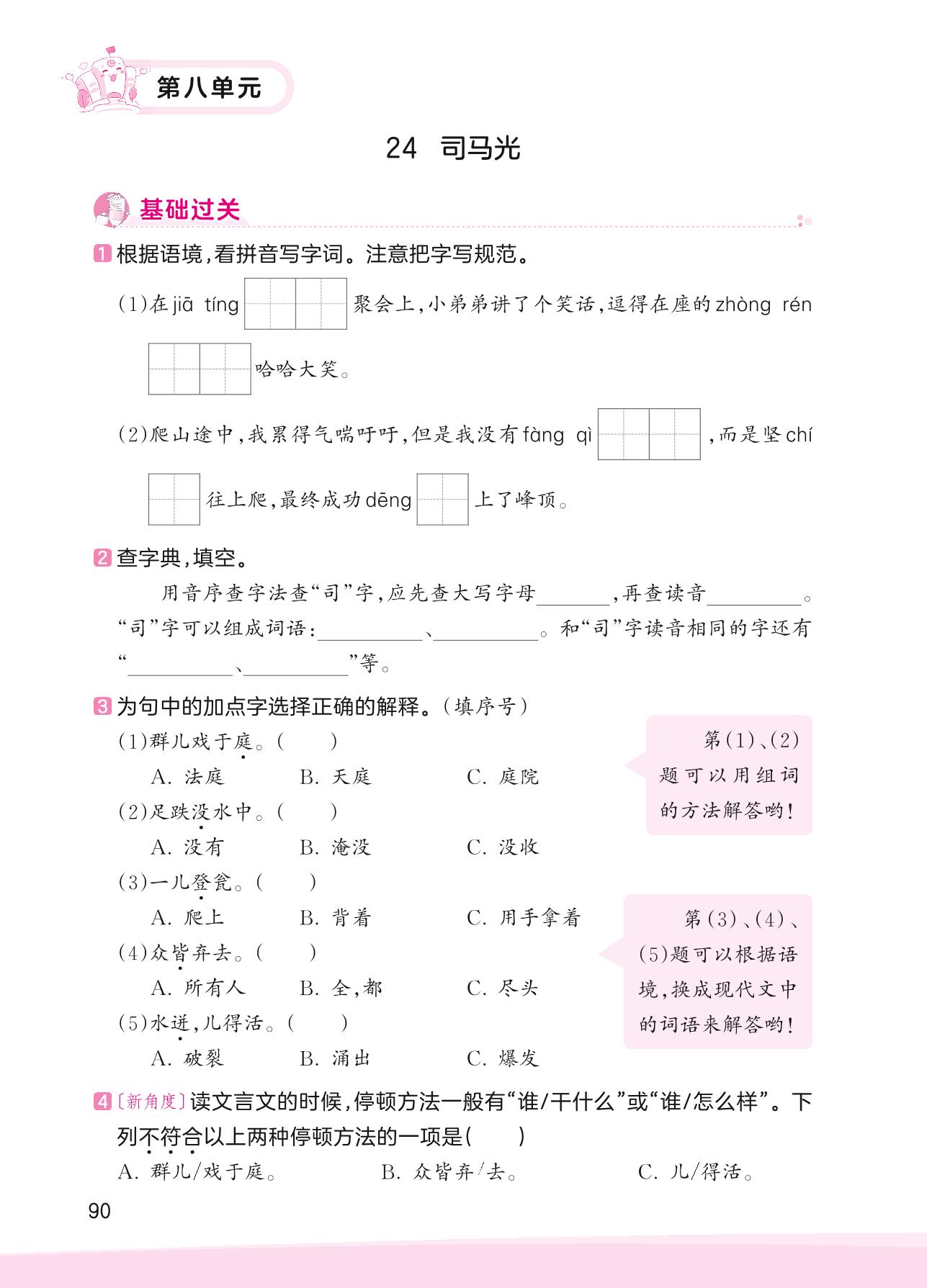 2023上册三年级语文人教版 第八单元 美好品质——24 司马光