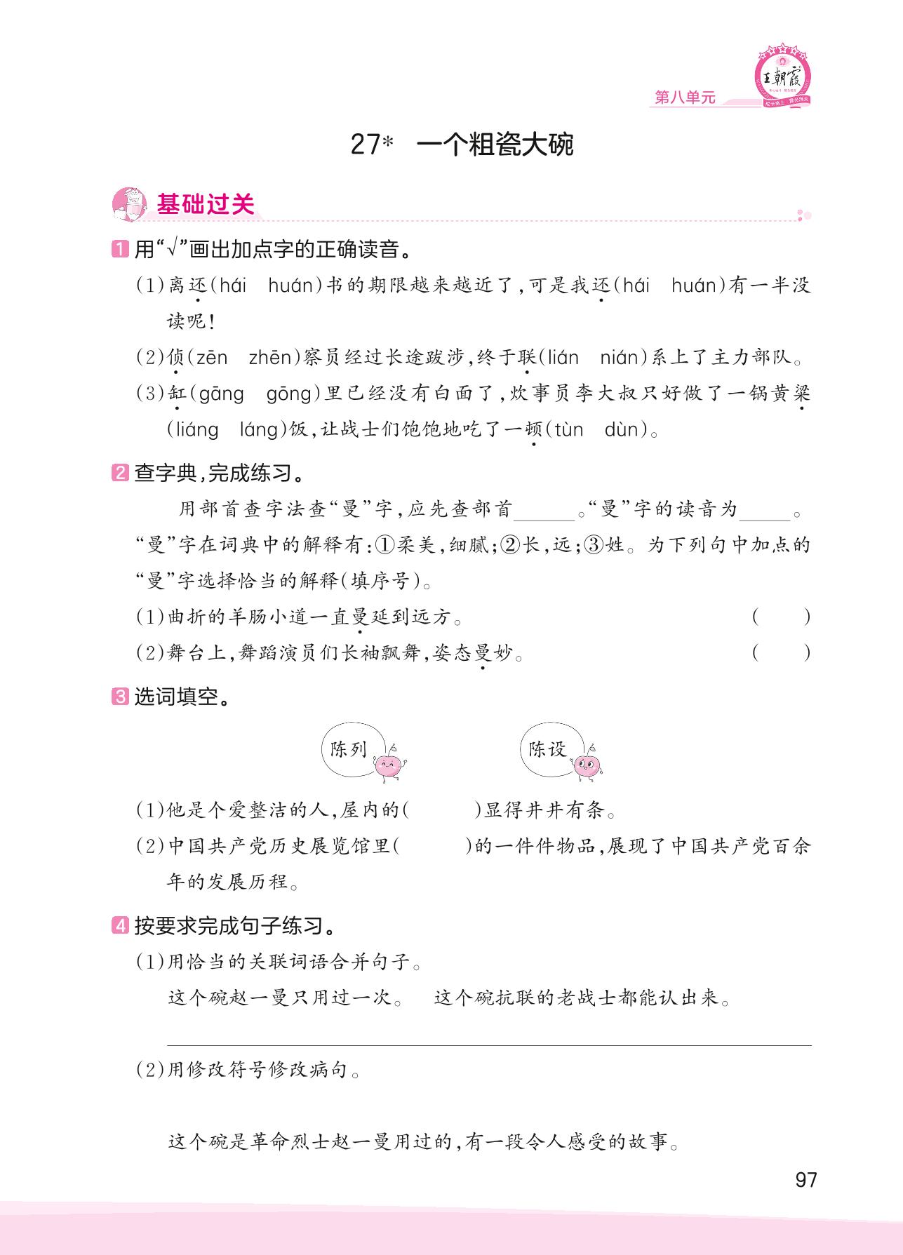 2023上册三年级语文人教版 第八单元 美好品质——27 一个粗瓷大碗