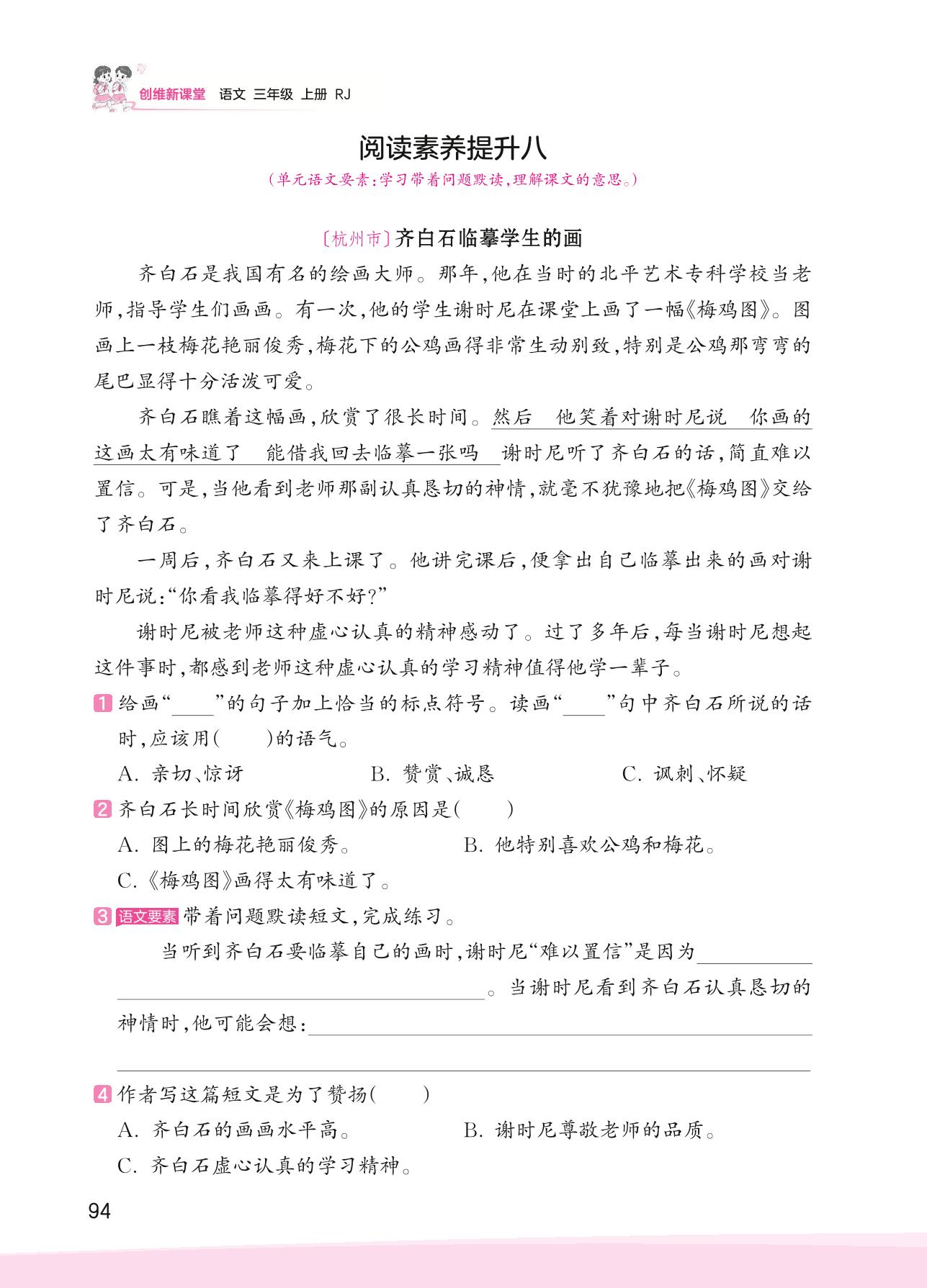 2023上册三年级语文人教版 第八单元 美好品质——阅读素养提升八