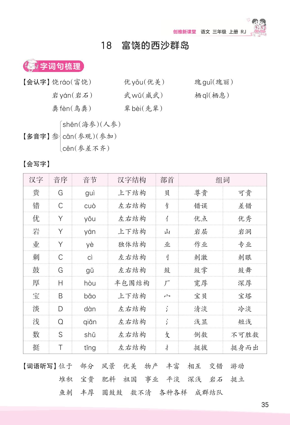 2023上册三年级语文人教版 助学手册 第六单元——18 富饶的西沙群岛