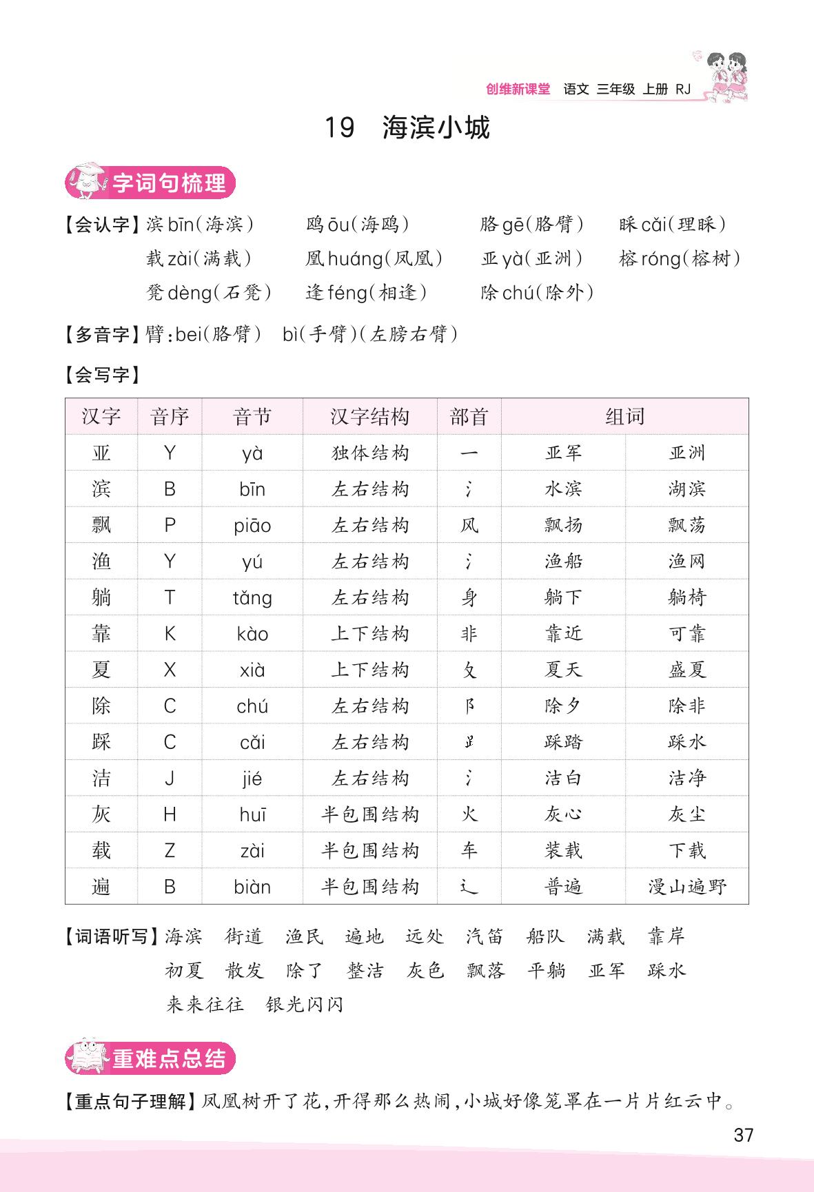 2023上册三年级语文人教版 助学手册 第六单元——19 海滨小城