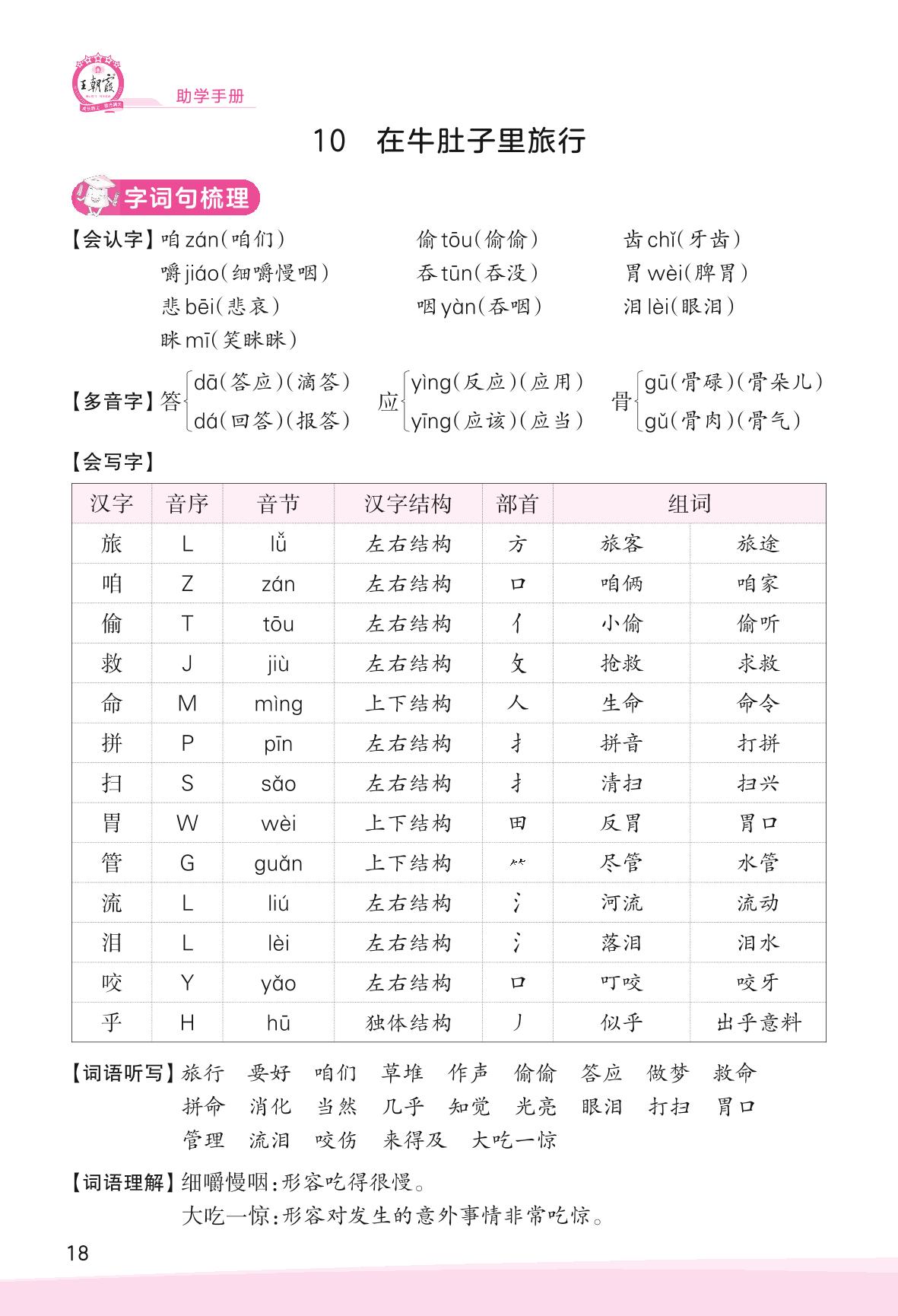 2023上册三年级语文人教版 助学手册 第三单元——10 在牛肚子里旅行