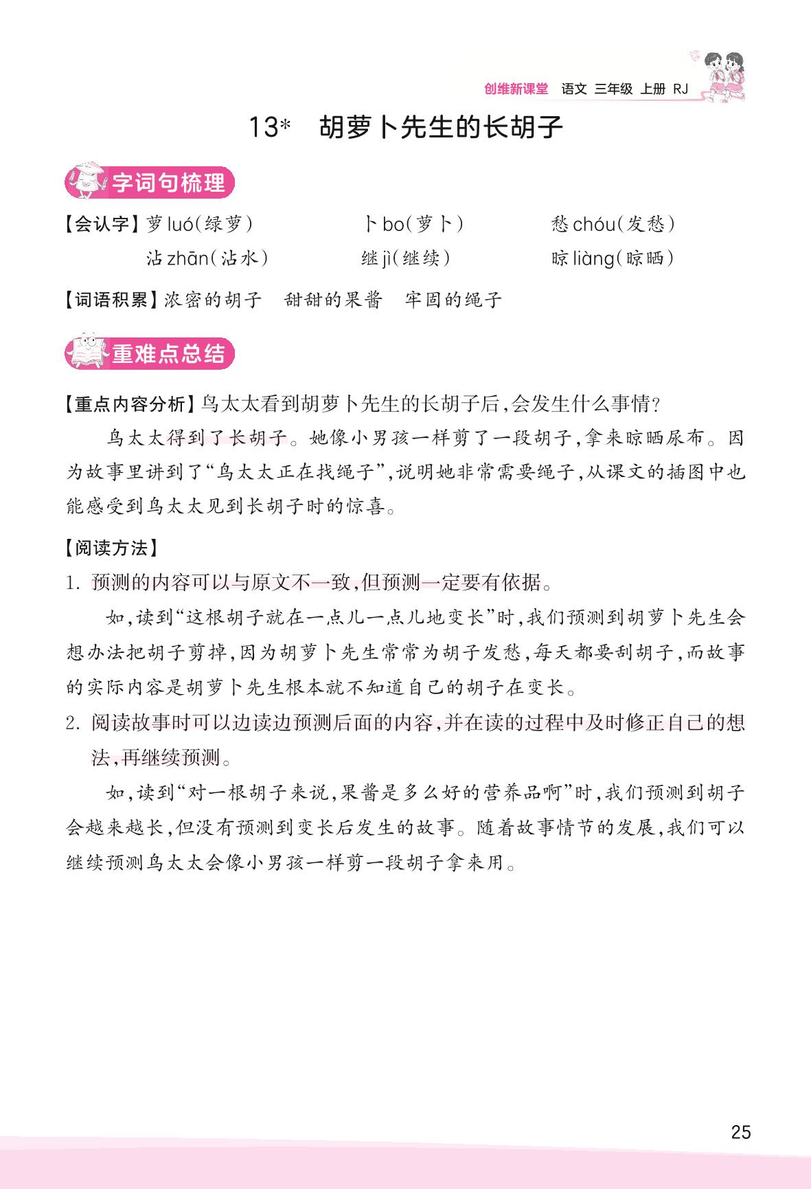 2023上册三年级语文人教版 助学手册 第四单元——13 胡萝卜先生的长胡子