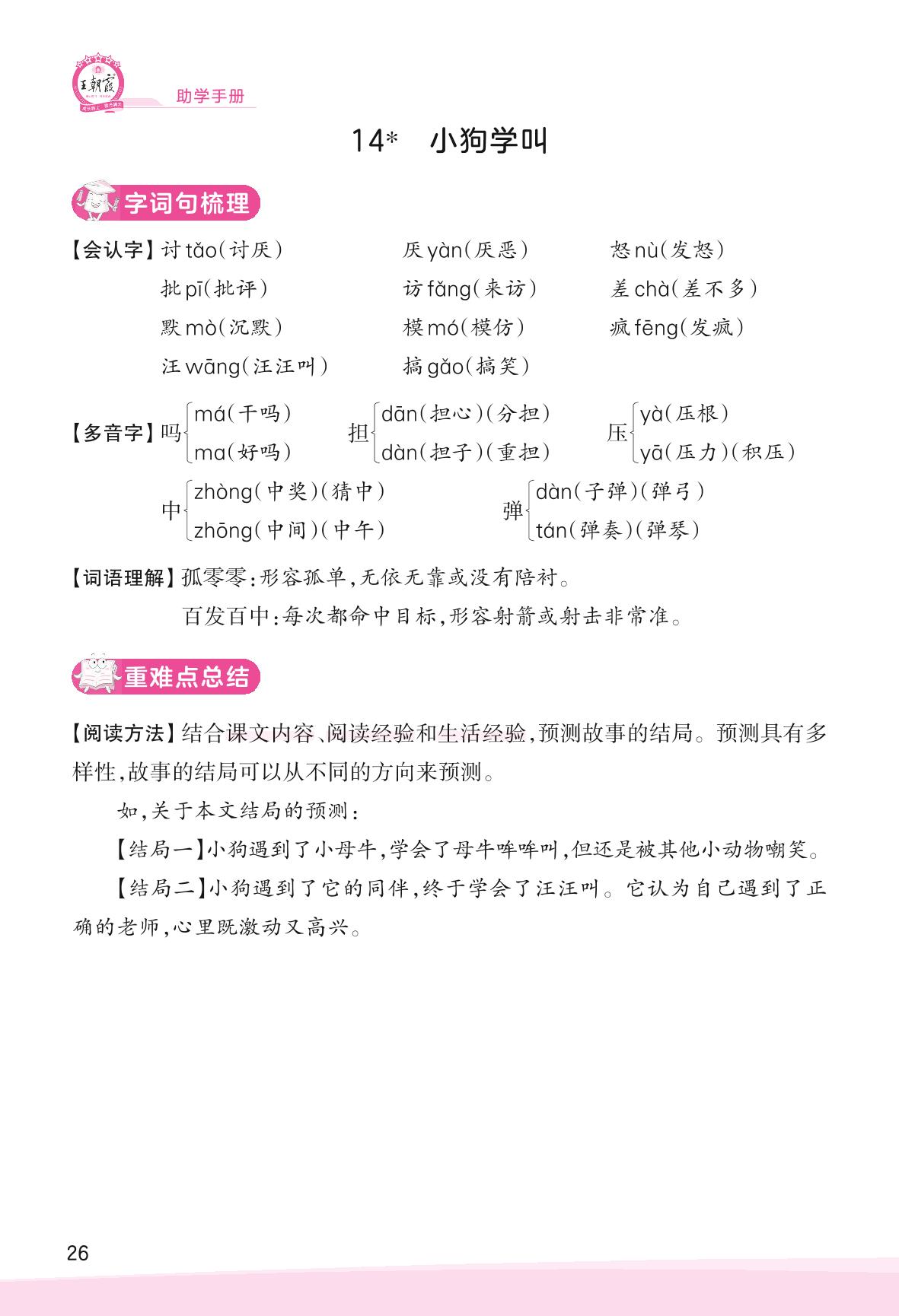 2023上册三年级语文人教版 助学手册 第四单元——14 小狗学叫