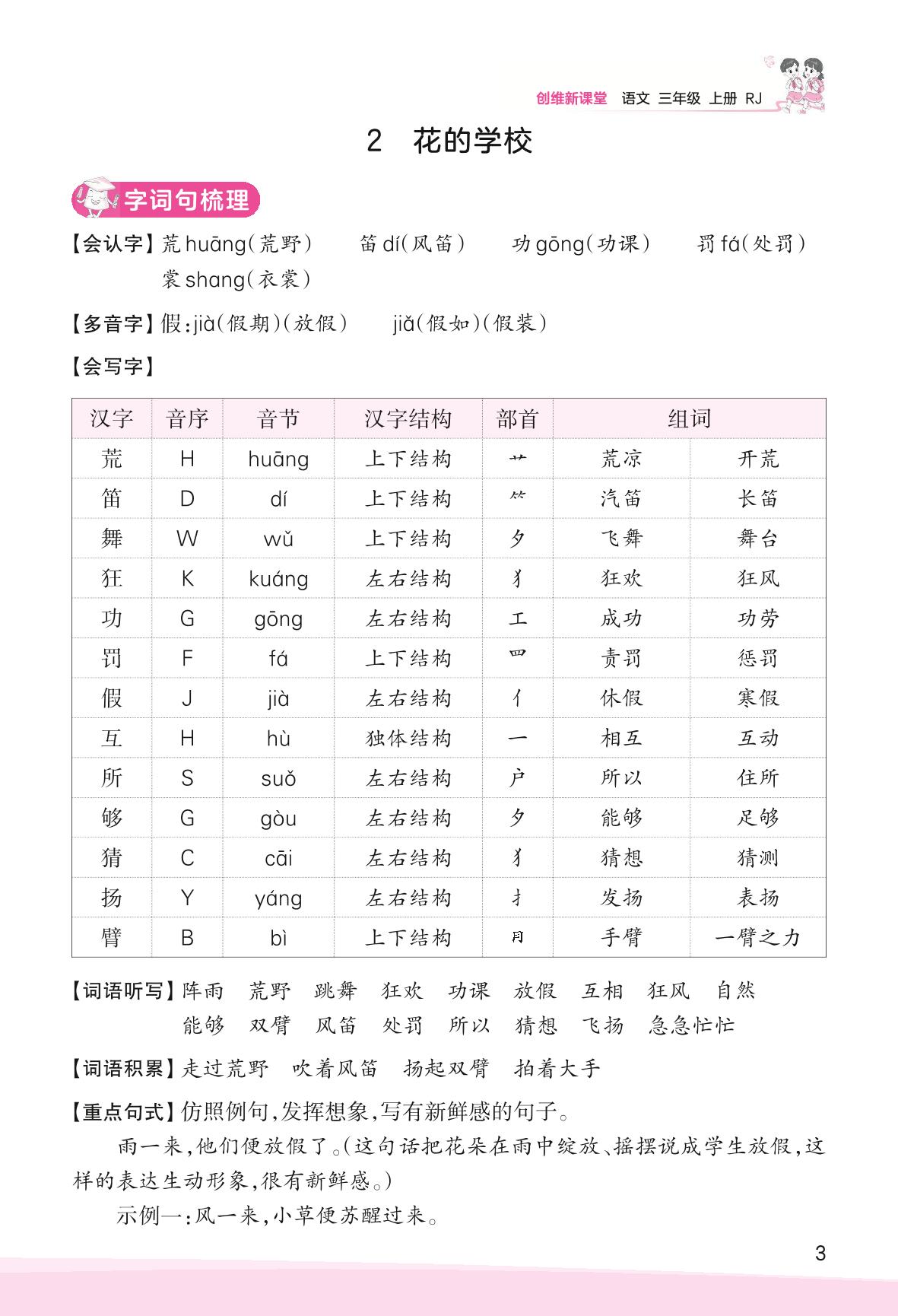 2023上册三年级语文人教版 助学手册 第一单元——2 花的学校