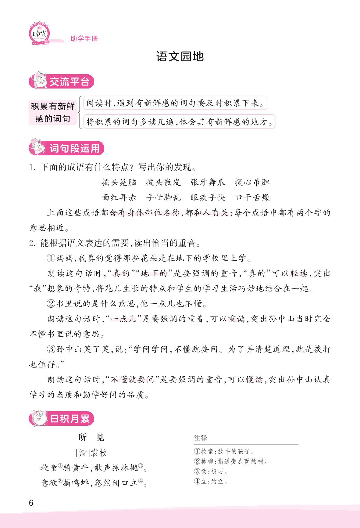 2023上册三年级语文人教版 助学手册 第一单元——语文园地