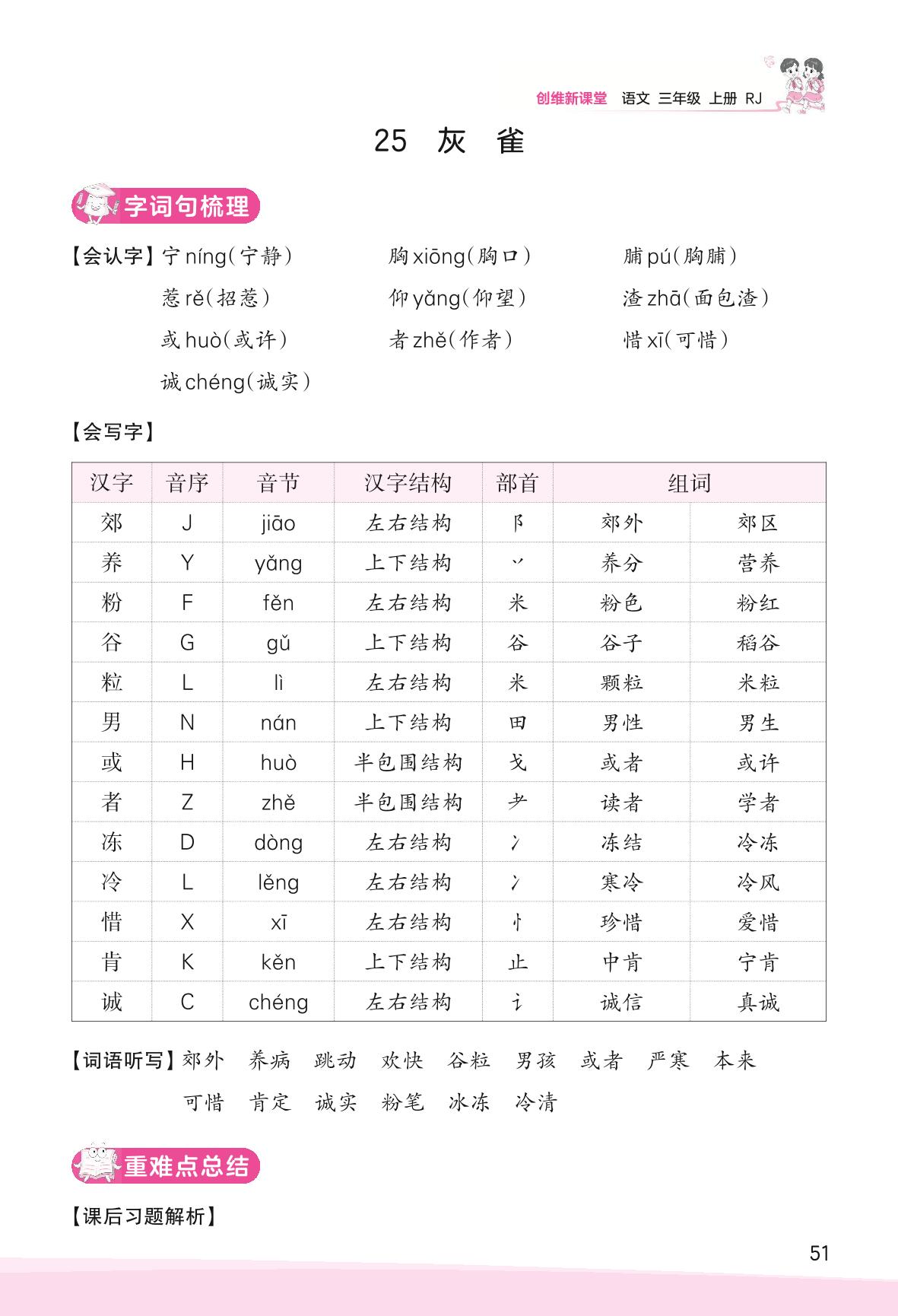 2023上册三年级语文人教版 助学手册 第八单元——25 灰雀
