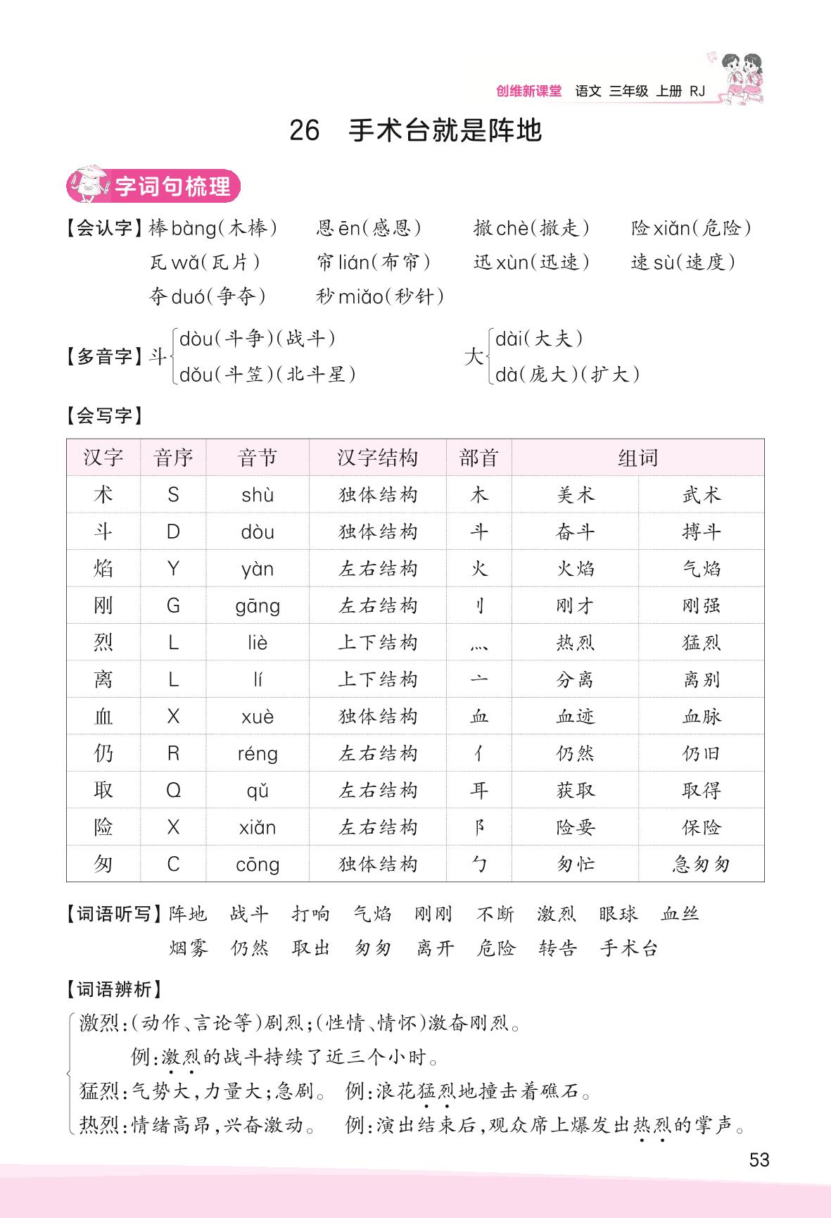 2023上册三年级语文人教版 助学手册 第八单元——26 手术台就是阵地