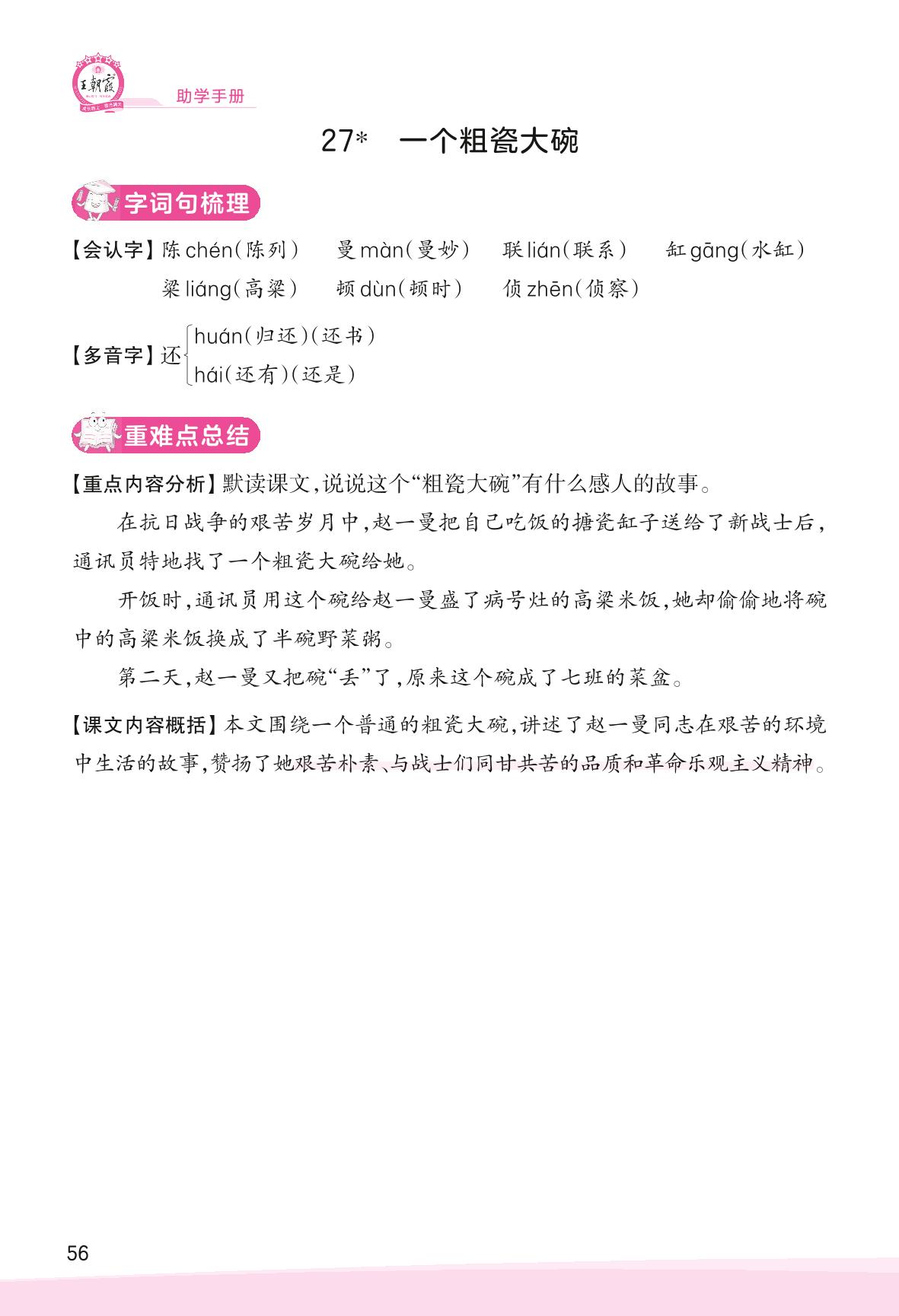 2023上册三年级语文人教版 助学手册 第八单元——27 一个粗瓷大碗