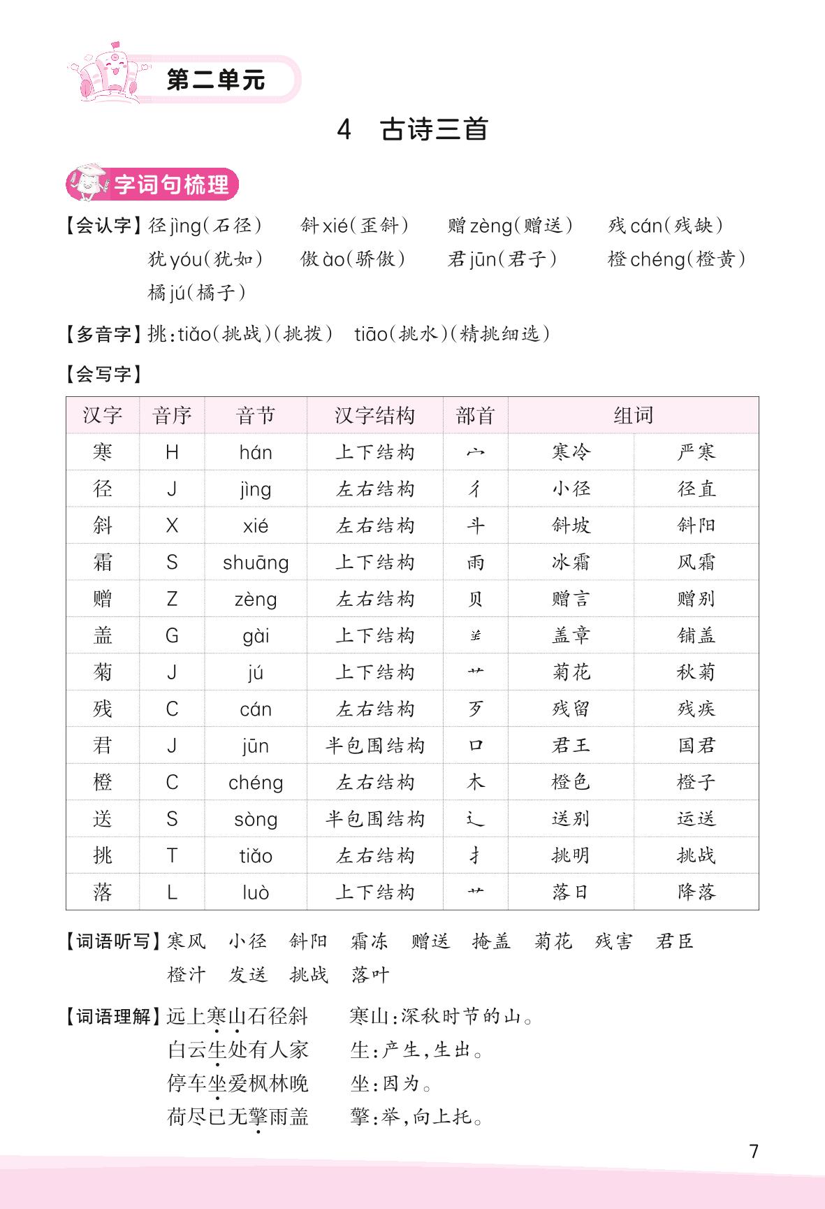 2023上册三年级语文人教版 助学手册 第二单元——4 古诗三首