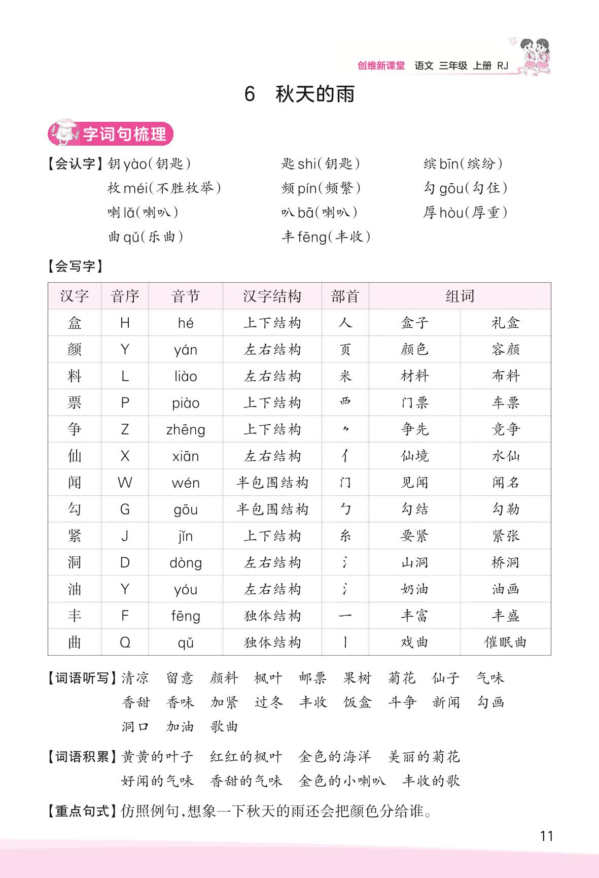 2023上册三年级语文人教版 助学手册 第二单元——6 秋天的雨