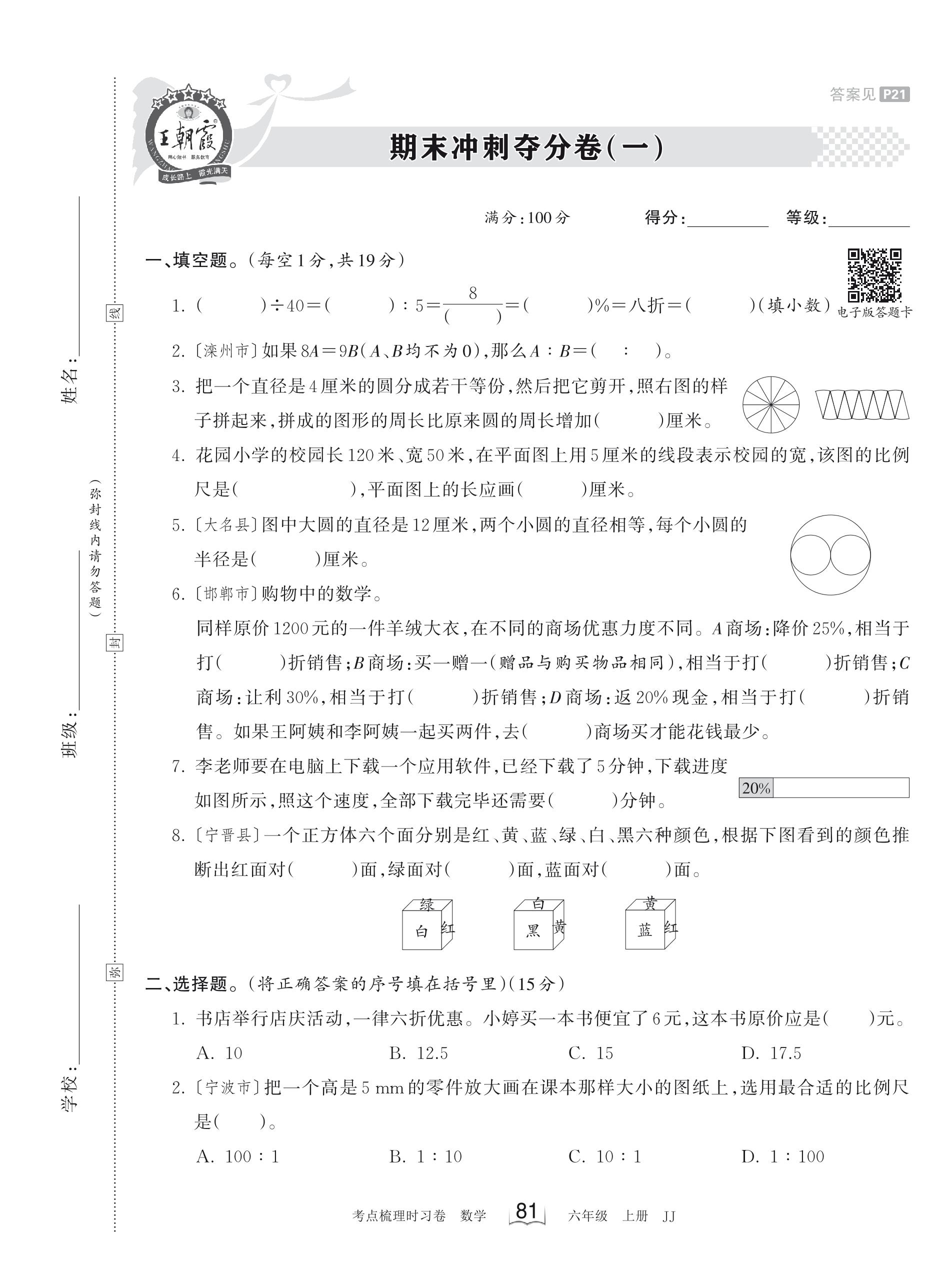2023上册六年级数学冀教版 期末冲刺夺分卷(一)