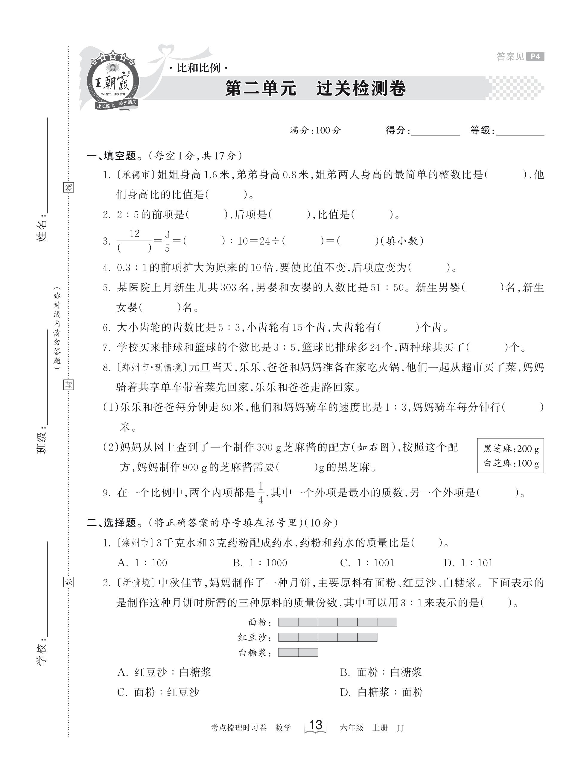 2023上册六年级数学冀教版 第二单元 过关检测卷