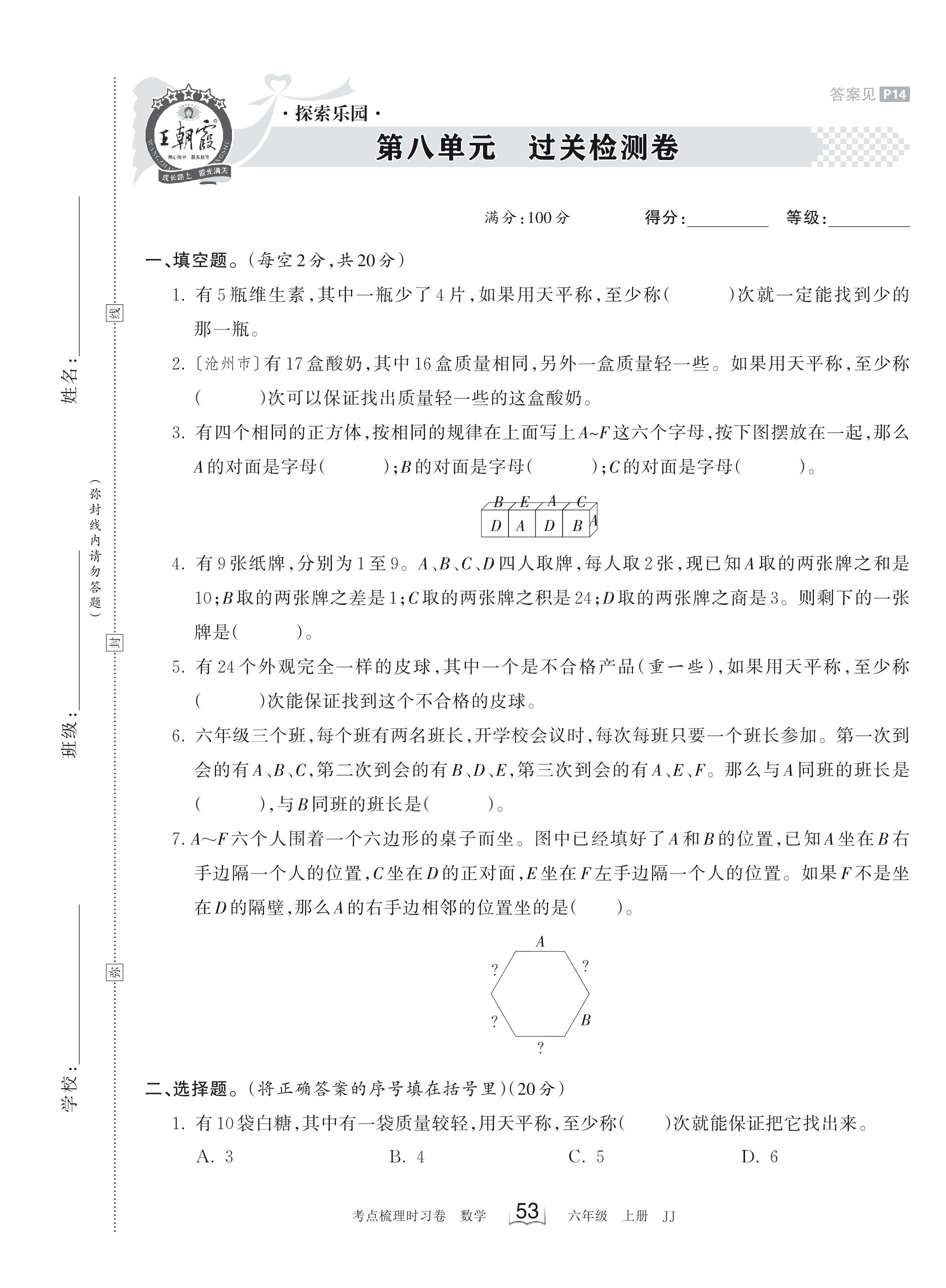 六年级数学冀教版上册单元卷