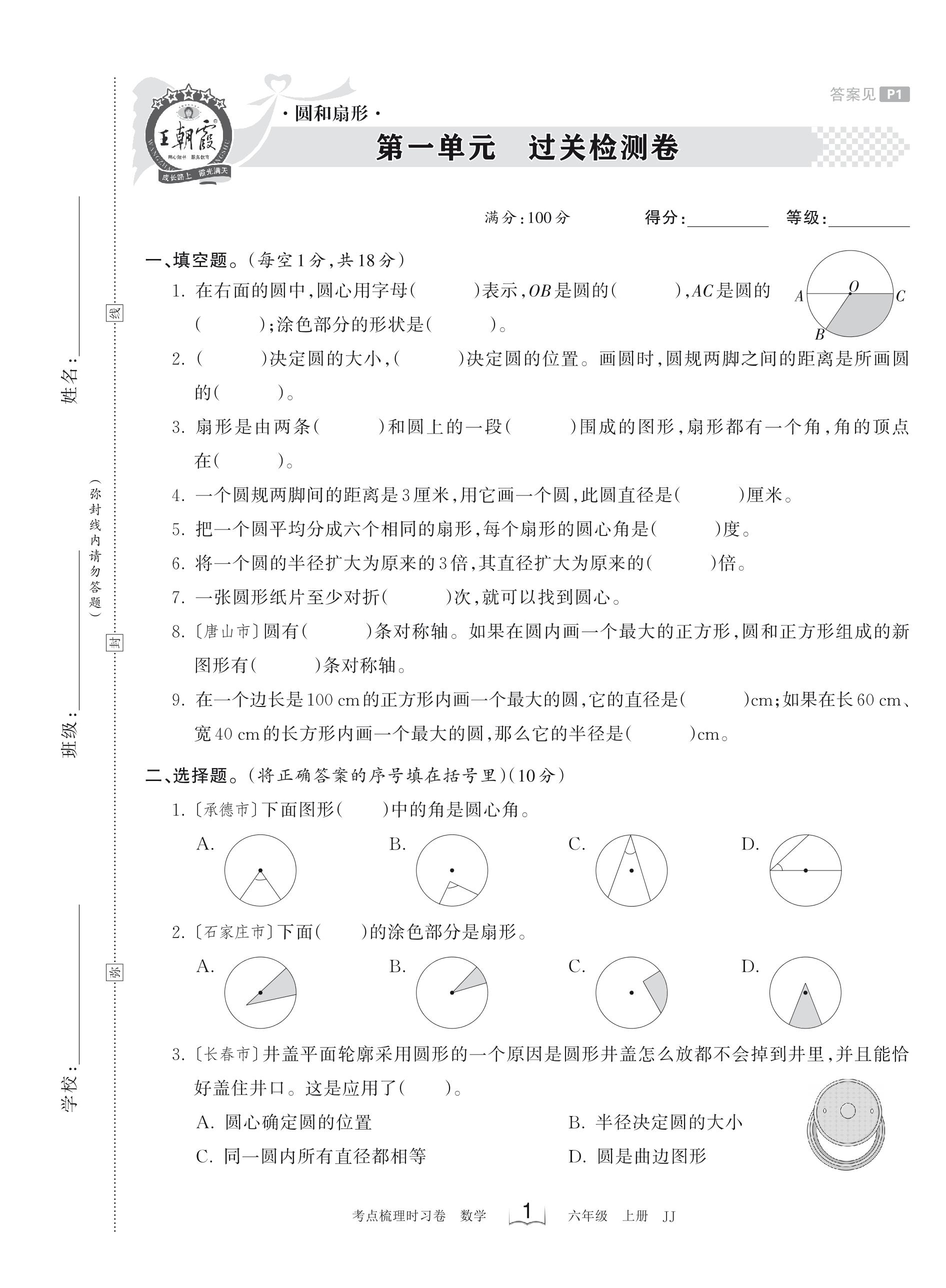 六年级数学冀教版上册单元卷