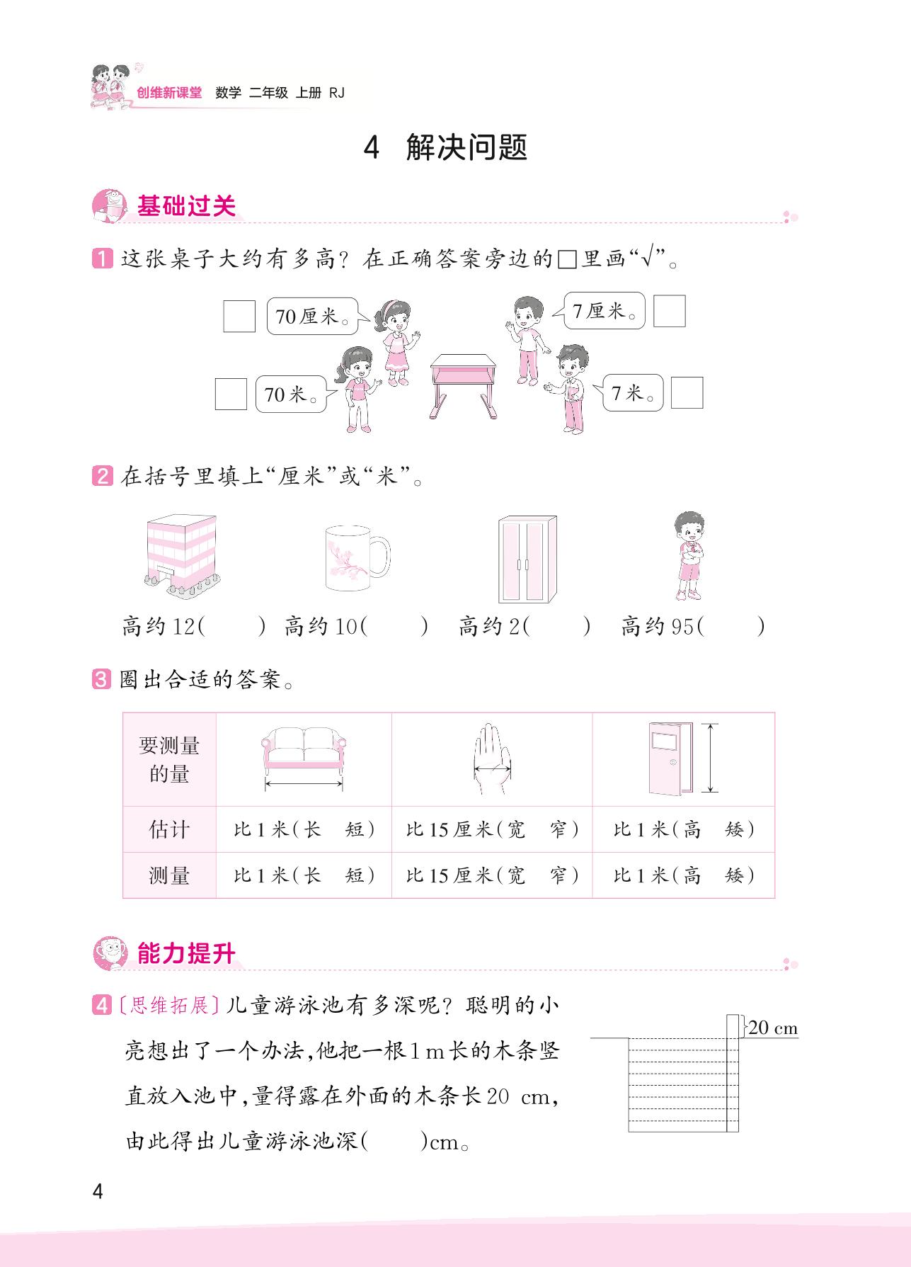 2023上册二年级数学人教版 一 长度单位——4 解决问题