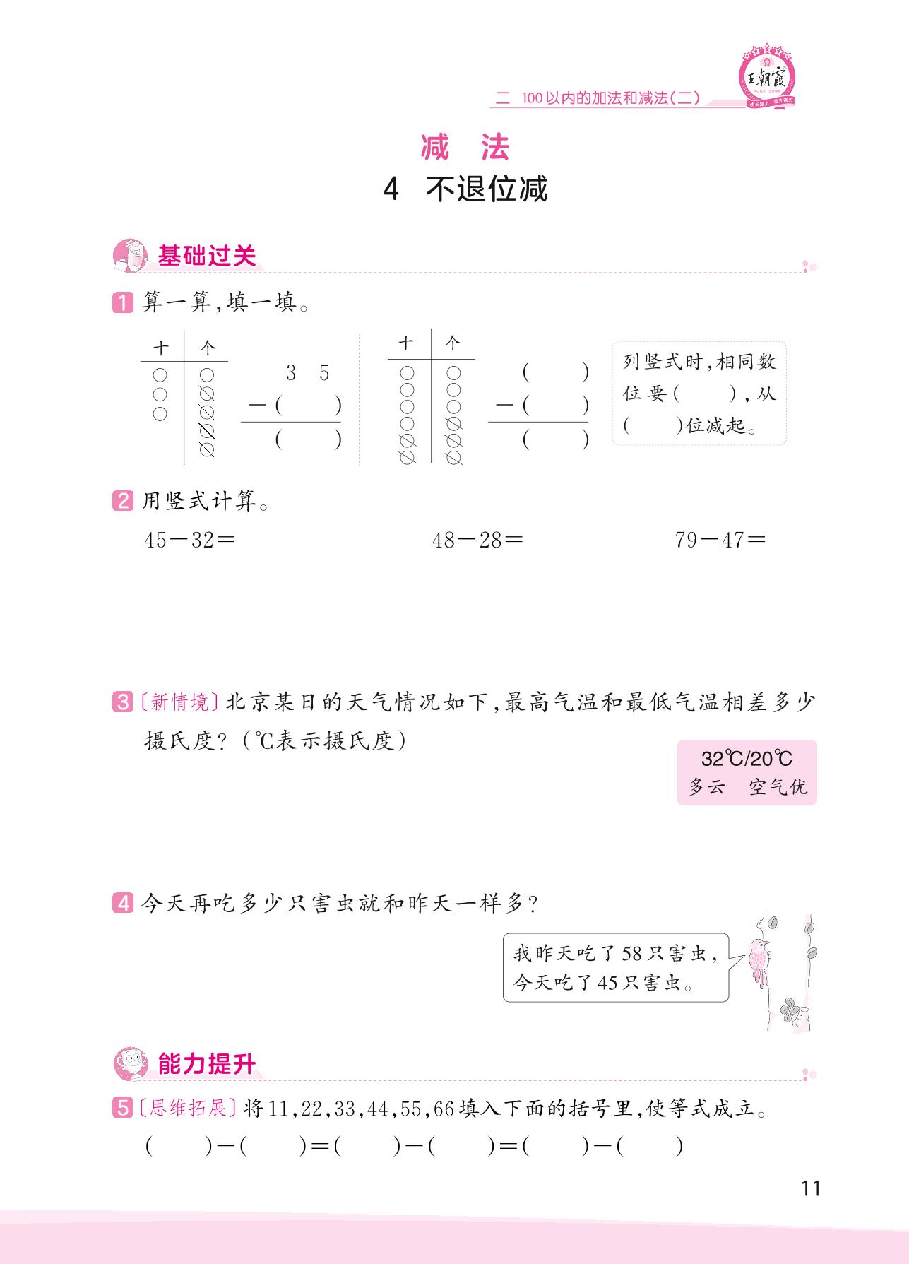 2023上册二年级数学人教版 二 100以内的加法和减法(二)——4 不退位减