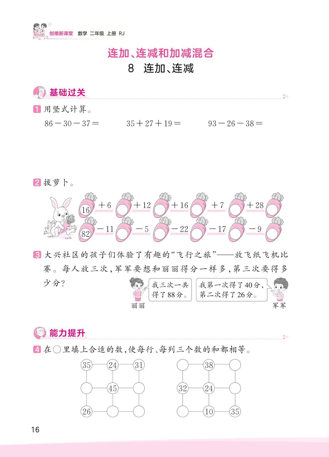 2023上册二年级数学人教版 二 100以内的加法和减法(二)——8 连加、连减