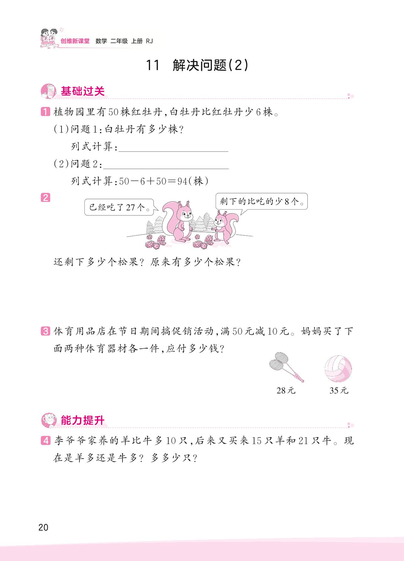2023上册二年级数学人教版 二 100以内的加法和减法(二)——11 解决问题(2)