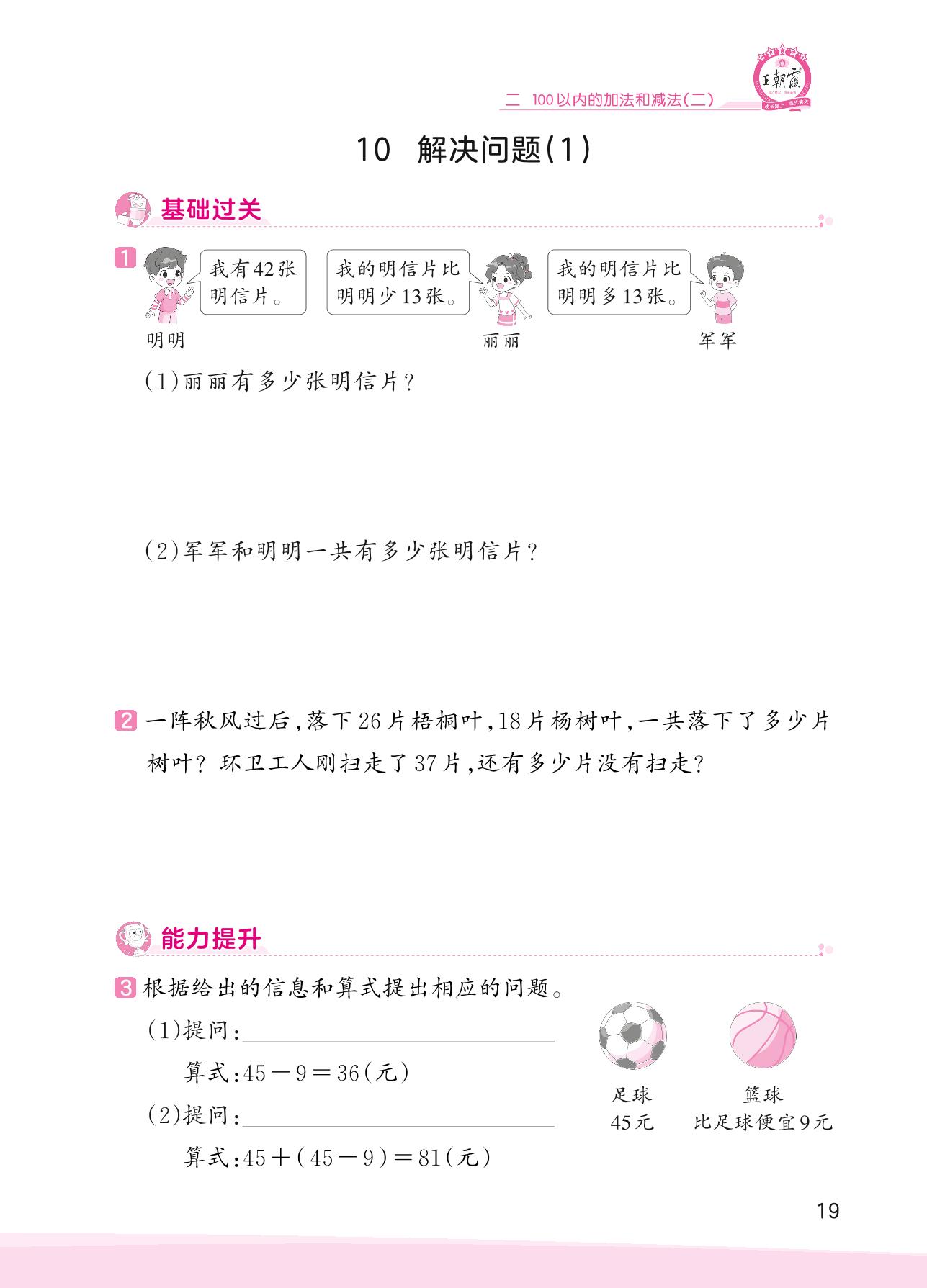 2023上册二年级数学人教版 二 100以内的加法和减法(二)——10 解决问题(1)