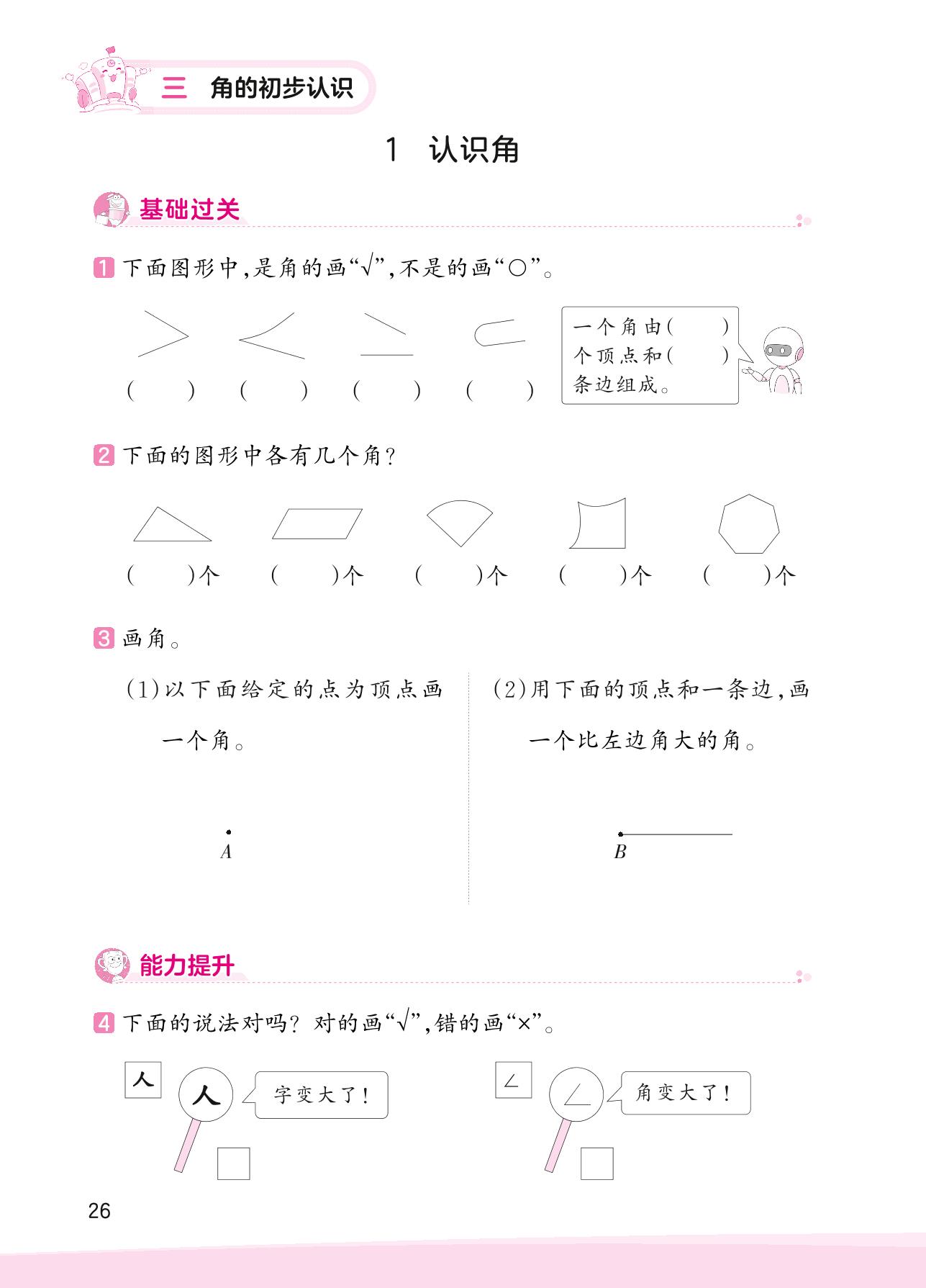 2023上册二年级数学人教版 三 角的初步认识——1 认识角