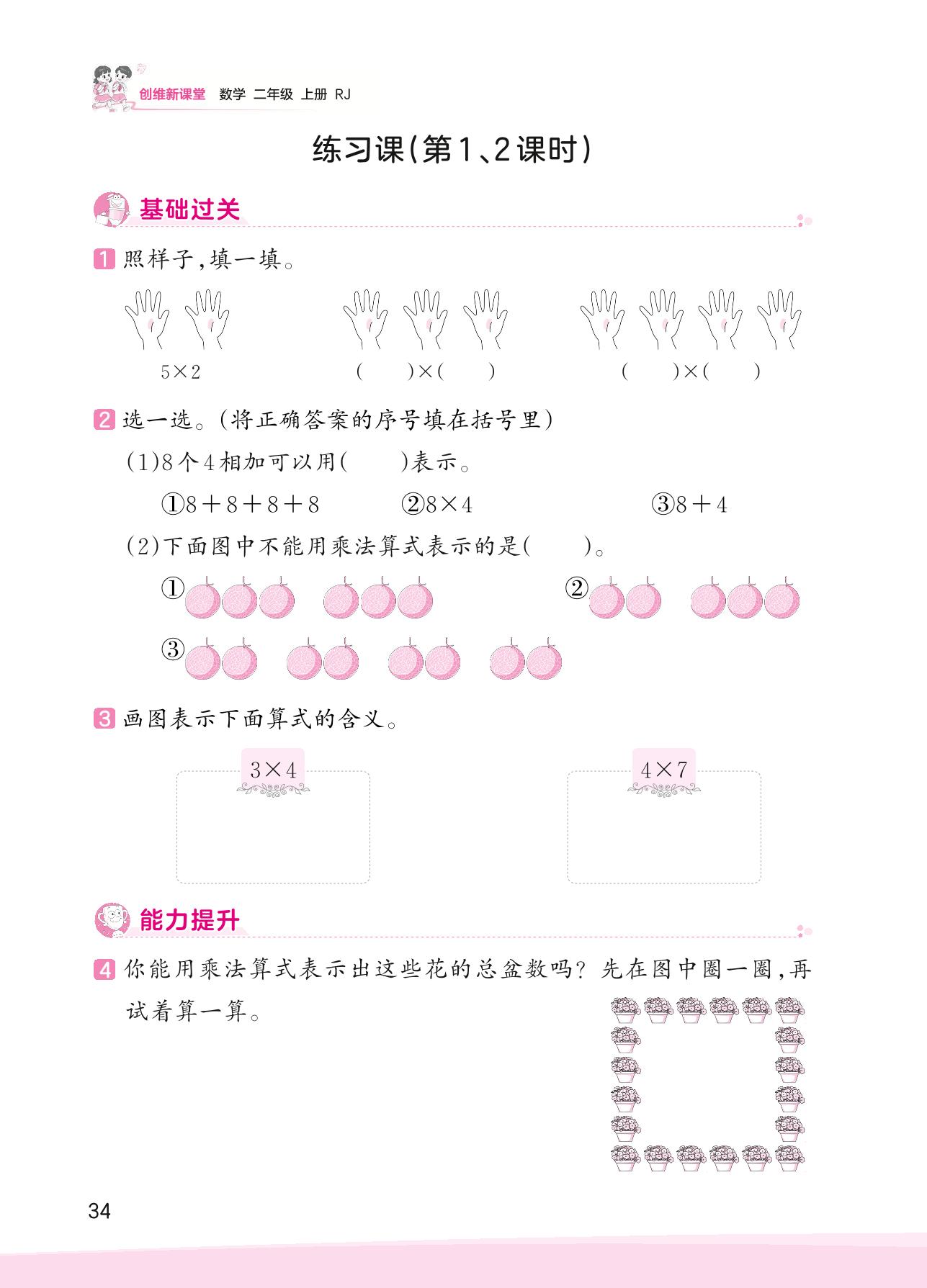 2023上册二年级数学人教版 四 表内乘法(一)——练习课(第1、2课时)