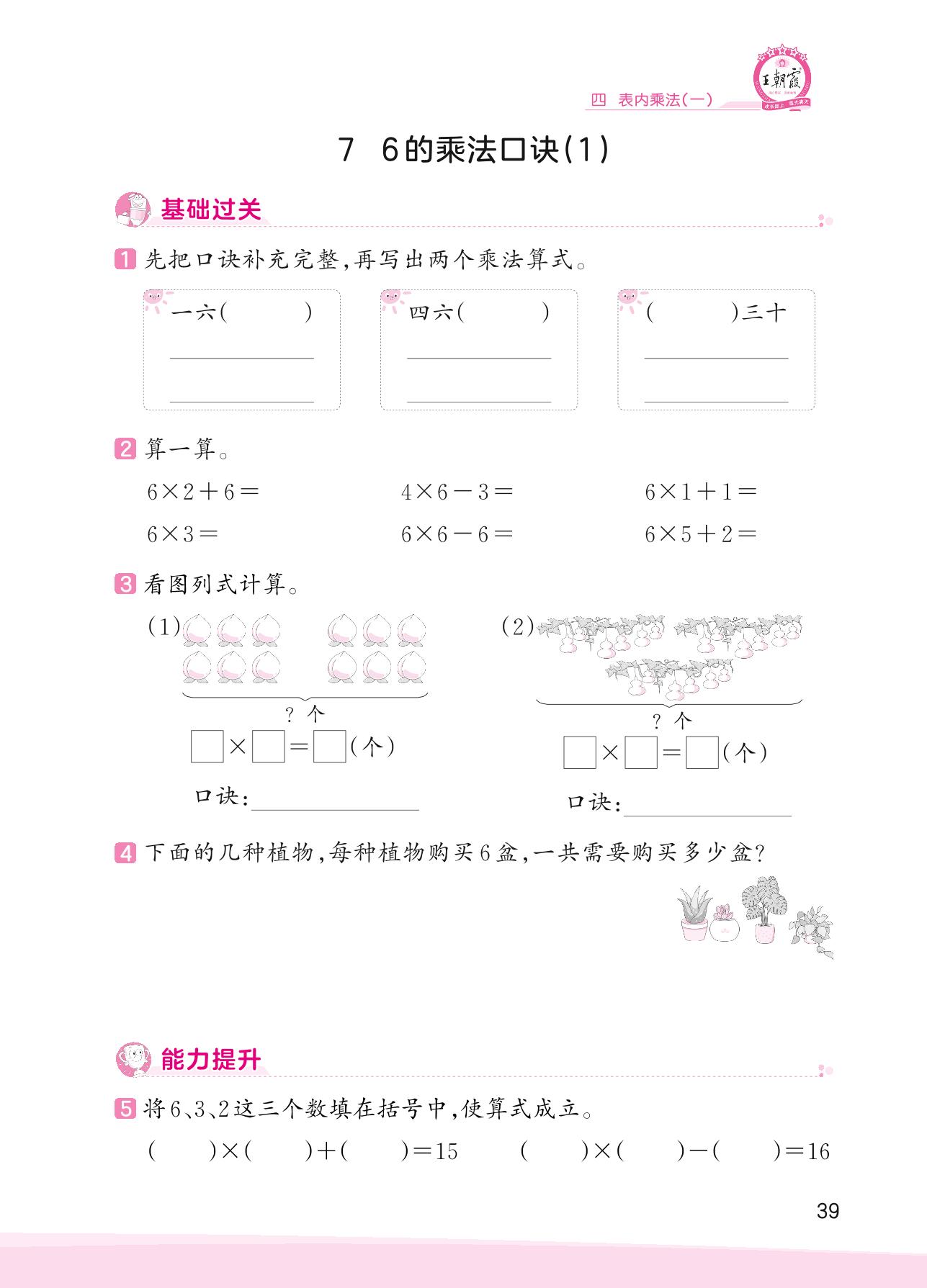 2023上册二年级数学人教版 四 表内乘法(一)——7 6的乘法口诀(1)