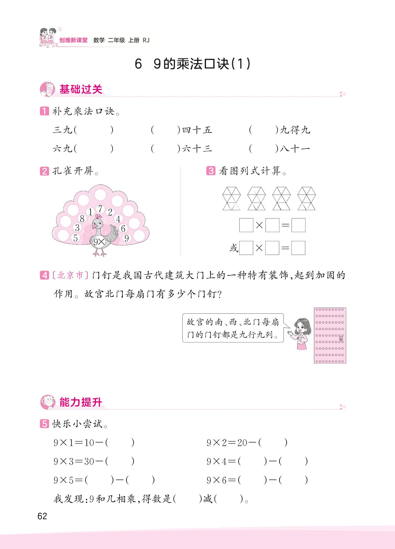 2023上册二年级数学人教版 六 表内乘法(二)——6 9的乘法口诀(1)