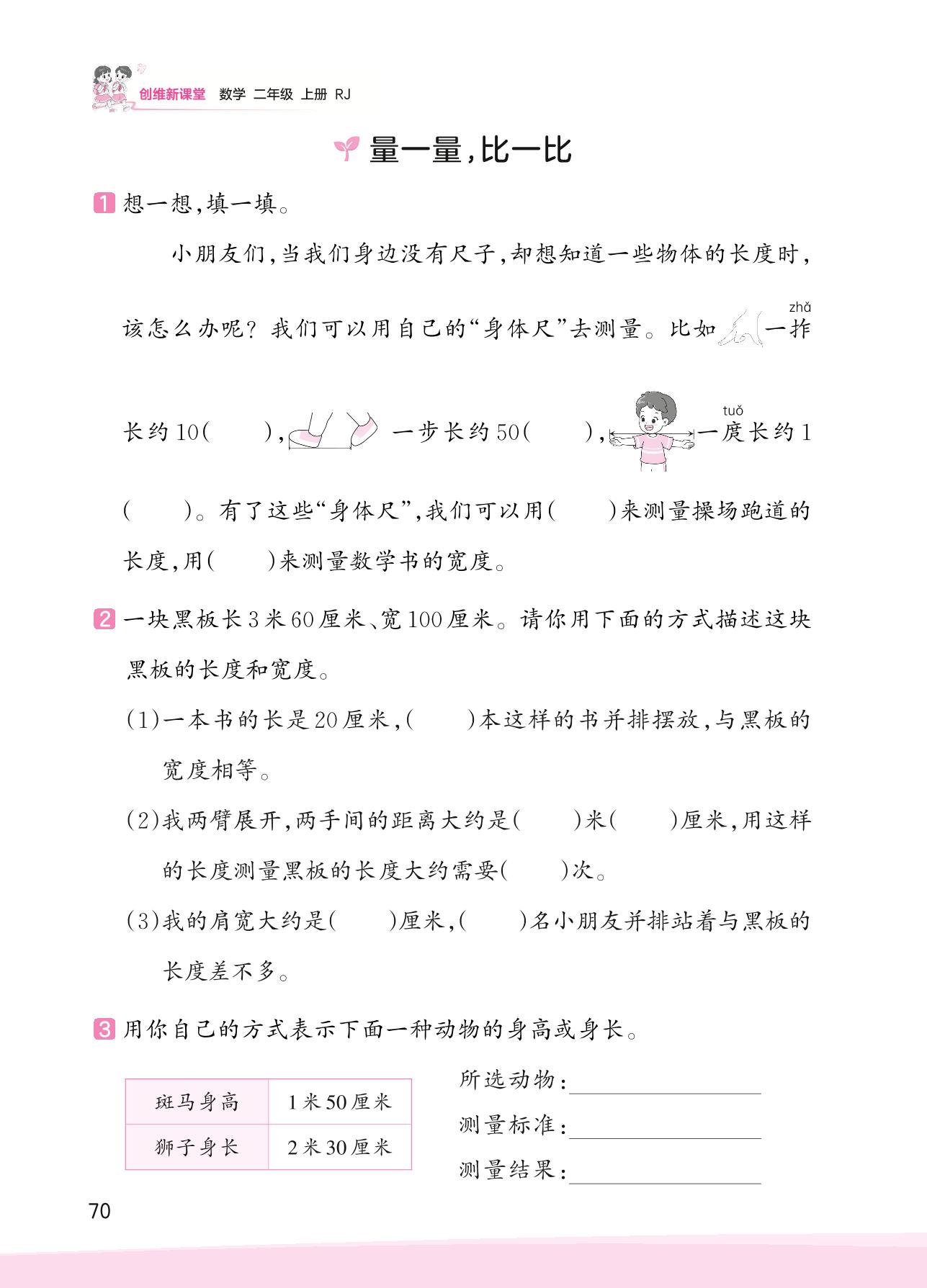 2023上册二年级数学人教版 六 表内乘法(二)量一量,比一比