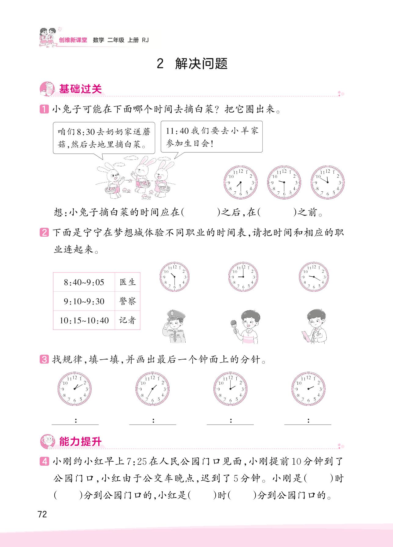 2023上册二年级数学人教版 七 认识时间——2 解决问题