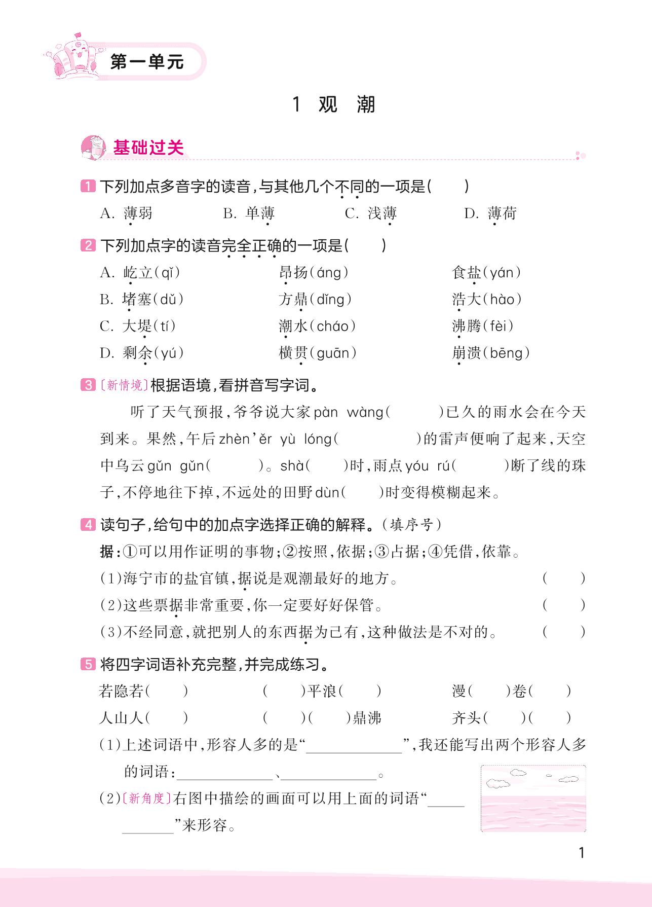 2023上册四年级语文人教版 第一单元 自然之美——1 观潮