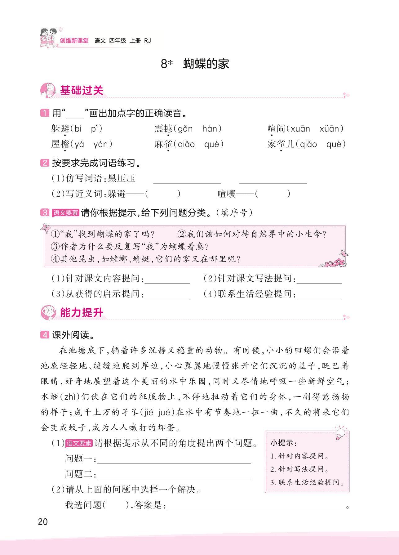 2023上册四年级语文人教版 第二单元 提问——8 蝴蝶的家
