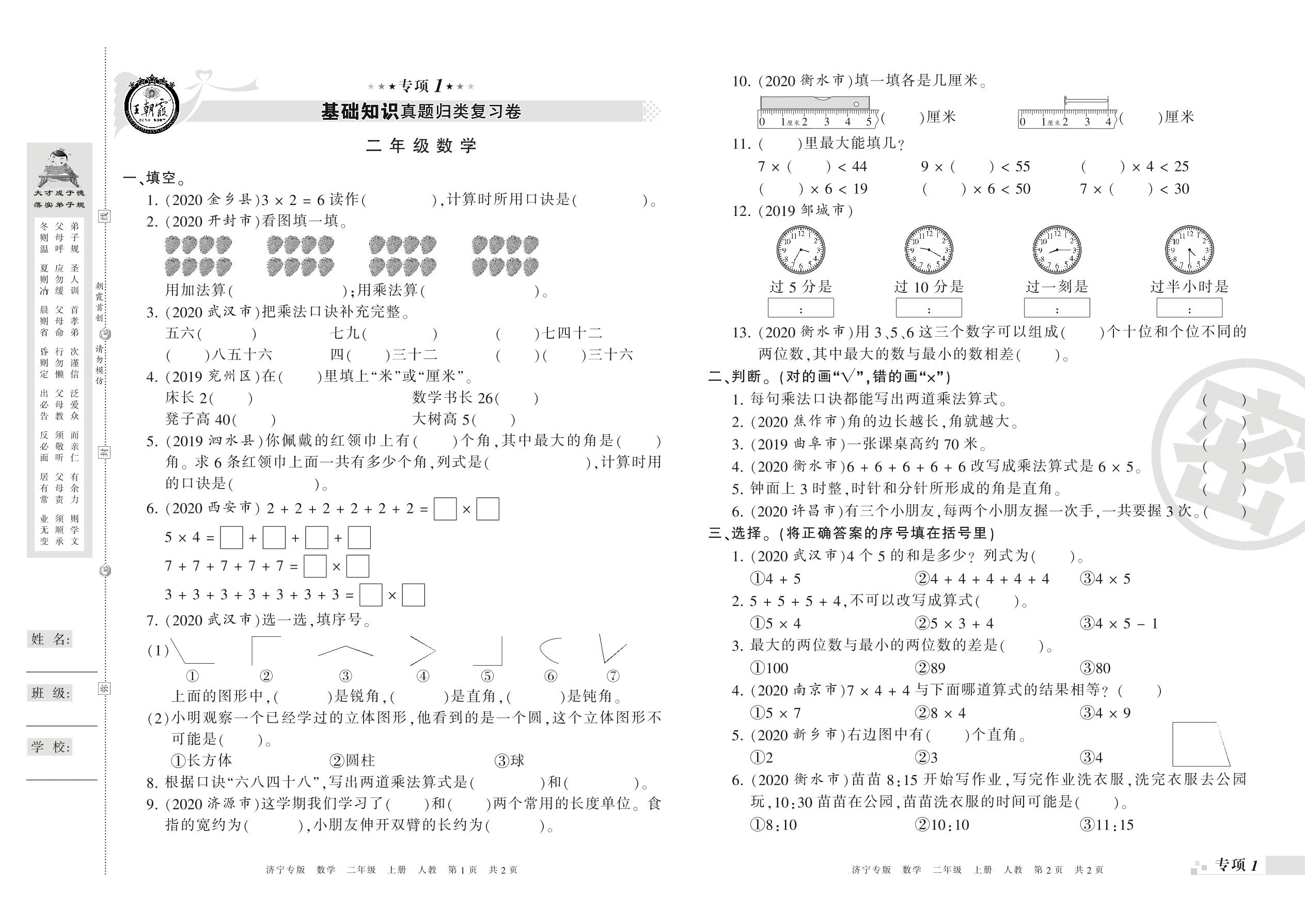 王朝霞期末专项卷——基础知识、计算真题归类复习二年级上册数学(人教版)_R21080385107【0】